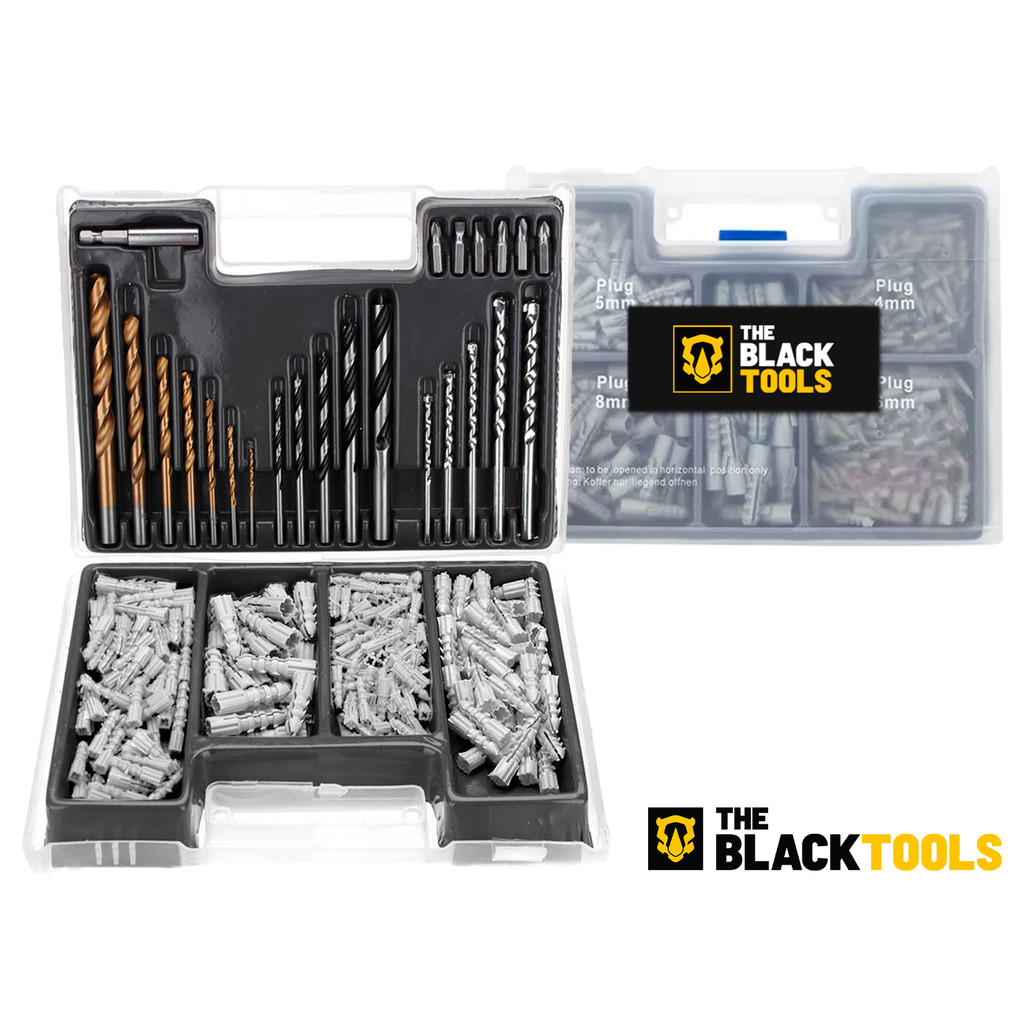 A The Black Tools é uma marca comprometida com a qualidade e as necessidades do cliente. Nosso objetivo é oferecer as melhores soluções para o seu dia a dia, com um design funcional e inovador. FURADEIRA COM IMPACTO 3/8" 10MM 550W TBF550 - The Black Tools A furadeira com impacto TBF550 da The Black Tools, é uma ferramenta elétrica poderosa projetada para tornar perfurações eficientes e precisas em diversas superfícies. Com sua potência de 550W, essa furadeira é capaz de enfrentar uma variedade de materiais, desde madeira até concreto. Seu design robusto e ergonômico oferece conforto durante o uso prolongado, reduzindo a fadiga do operador. VANTAGENS: - Controle de Velocidade. - Resultados Precisos. - Marca de Confiança. - Potência Versátil. - Função de Impacto. ITENS INCLUSOS: - 01 Furadeira de Impacto. - 01 Chave de Mandril. - 01 Manual de Uso. FICHA TÉCNICA: - Capacidade de Perfuração da Alvenaria: 10mm. - Capacidade de Perfuração da Madeira: 25mm. - Capacidade de Perfuração do Metal: 10mm. - Mandril (polegadas): 3/8'' (10mm). - Comprimento do Cabo: 1,2 metros. - Possui Botão de Trava: Sim. - Possui Função Impacto. - Velocidade: 2800 rpm. - Impacto: 48000 ipm. - Potência: 550W. Marca: The Black Tools Modelo: TBF550 Peso: 1.800 Kg Dimensões (AxLxP): 25,5 x 23,5 x 5 cm Garantia: 06 Meses + JOGO DE BROCAS BITS E BUCHAS COM 300 PEÇAS O Jogo de brocas bits e buchas com 300 peças da The Black Tools é ideal para uso doméstico e hobby, conta com as brocas e bits e buchas com as medidas mais comuns. As Brocas de concreto são feita de aço carbono com uma placa de metal duro feita de material VK8. VANTAGENS: - Brocas para metal de aço rápido (HSS), brocas para madeira são de aço-carbono. - Bits de aço cromo vanádio, instrumentos embalados em caixa de plástico. ACOMPANHA: - 05 Bocas para concreto: 4, 5, 6, 8 e 10 mm - 07 Brocas para metal: 2, 3, 4, 5, 6, 8 e 10 mm - 05 Brocas para madeira: 4, 5, 6, 8 e 10 mm - 01 Prolongador - 02 Bits fenda - 04 Bits phillips - 120 Buchas 4mm - 65 Buchas 5mm - 50 Buchas 6mm - 25 Buchas 8mm - 16 Buchas 10m Marca: MTX Modelo: TMM300 Garantia: 03 Meses SKU: KIT22913_23836 SKU: KIT22914_23836
