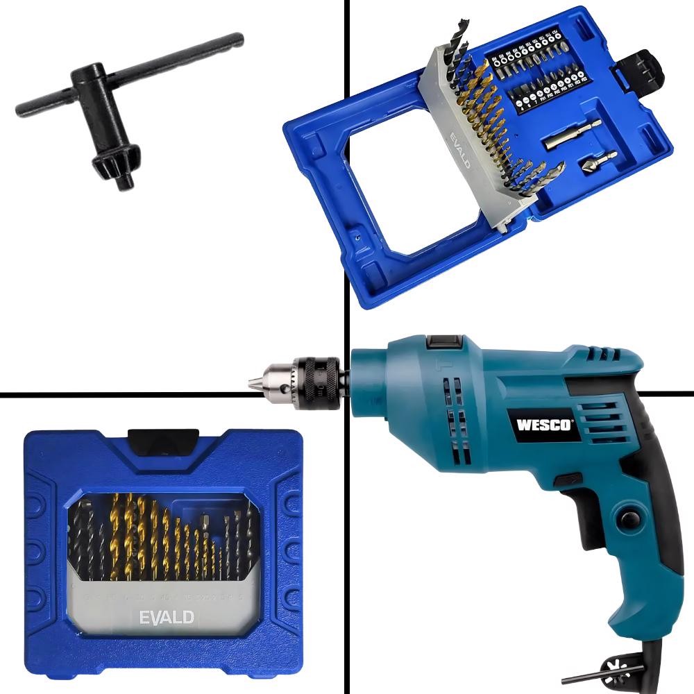 Furadeira de Impacto 3/8 POL 550W Profissional e Estojo de Brocas e Pontas com 41 Peças EVALD