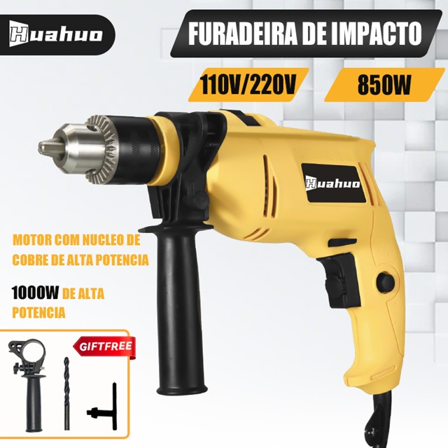 Furadeira E Parafusadeira Industrial De Impacto Elétrica 110V/220V 1000W Com Acessórios