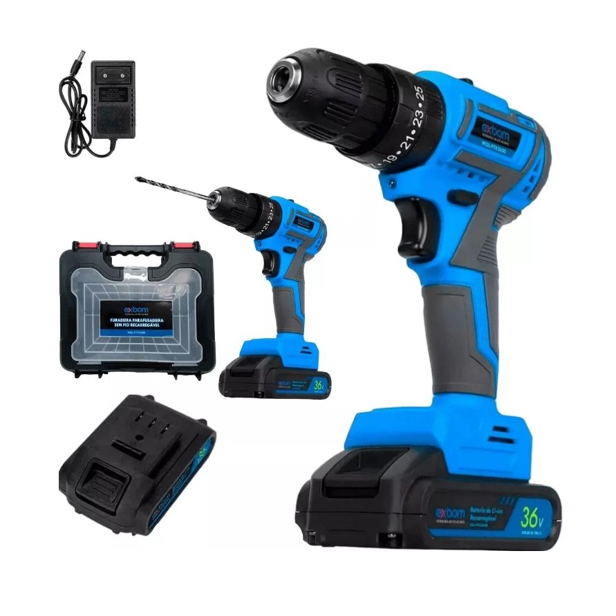 Furadeira e Parafusadeira Sem Fio Recarregável 36V com 2 Baterias e Maleta MQL-PFX5600 EXBOM