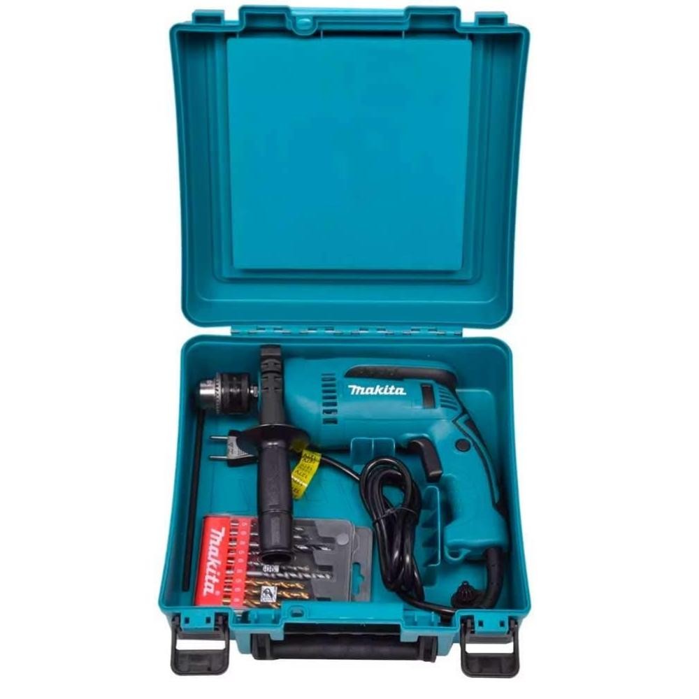 A Furadeira de Impacto Makita Industrial 1/2” 760W 220V foi projetada para atender aos trabalhos mais exigentes da construção civil, manutenção industrial e reformas em geral. Reconhecida pela robustez e durabilidade, a Makita entrega neste modelo uma combinação perfeita de desempenho, confiabilidade e versatilidade, ideal para profissionais que não abrem mão de ferramentas eficientes e resistentes. Equipada com motor potente de 760W, a furadeira garante força constante para perfurações em concreto, alvenaria, madeira e metal. A função impacto proporciona maior eficiência em superfícies duras, enquanto o mandril de 13 mm (1/2”) permite o uso de uma ampla variedade de brocas, ampliando as possibilidades de aplicação. Seu design ergonômico oferece melhor controle, estabilidade e conforto, mesmo em longos períodos de uso. Pensando na praticidade e organização, o equipamento acompanha uma maleta plástica resistente, facilitando o transporte e o armazenamento, além de um kit de brocas que torna a ferramenta pronta para uso imediato. Desenvolvida para uso industrial, esta furadeira suporta rotinas intensas com alto padrão de qualidade e desempenho Makita. Principais características: Função impacto para perfuração em concreto e alvenaria Indicada para madeira, metal, concreto e alvenaria Acompanha maleta plástica para transporte Design robusto e ergonômico