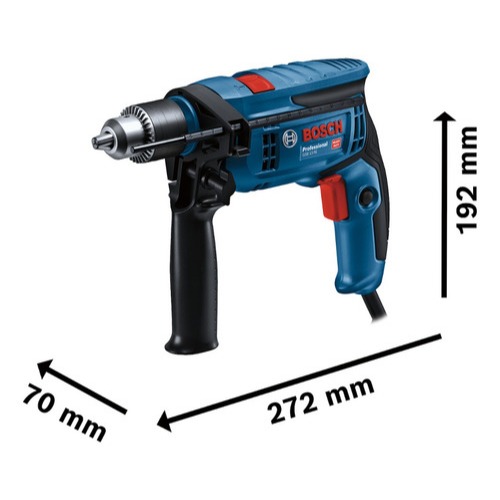 Ficou alguma dúvida? Faça sua pergunta, ficaremos satisfeitos em lhe atender bem. Emitimos Nota Fiscal. Qualidade, preço Justo e atendimento Perfeito. =====PRODUTO NA TENSÃO DE 127V===== Vantagens: - A Furadeira de Impacto Bosch GSB 13 RE possui 750W de potência, é super leve e compacta! Vem com empunhadeira emborrachada para o agarre seguro e confortável. Além disso, possui interruptor de velocidade variável e botão trava para trabalhos contínuos. - Interruptor com velocidade variável e botão-trava para trabalhos contínuos. Motor de alto desempenho de 750 W para atender a todas as necessidades dos usuários. Empunhadeira emborrachada: agarre seguro e confortável. - 40% mais rápida que os concorrentes nas perfurações e 3X mais durável; - Público Alvo: Pedreiros, marceneiros, carpinteiros, instaladores em geral, vidraceiros, oficinas de manutenção, serralheiros, eletricistas, calheiros; - Uso industrial com 2 anos de garantia. Características: - Modelo Bosch Heavy Duty; - Possui velocidade variável; - Acabamento da ferramenta: Poliamida, metal e elastômero; - Acabamento do cabo: Borracha, cobre; - Comprimento do cabo: 2 metros; - Tipo de embalagem: maleta plástica; - Material de aplicação indicado: Perfurações em concreto, alvenaria, madeira e metal com e sem impacto. Especificações Técnicas: - Cor: Azul; - Tensão: 110 V ou 220 V (não é bivolt); - Potência nominal absorvida: 750 W; - Nº de rotações em vazio: 0 - 3.150 rpm; - Torque nominal: 1,8 Nm; - Mandril: 1/2"– 20 UNF (13 mm); - Tipo de mandril: Com chave; - Amplitude de aperto: 1,5 mm - 13 mm; - Impacto por minuto: 0-47.250 ipm; - Altura: 21cm; - Largura: 7cm; - Comprimento: 27,4cm; - Peso: 1,8 kg. Faixa de Perfuração: - Diâmetro de perfuração em concreto: 13 mm; - Diâmetro de perfuração em madeira: 25 mm; - Diâmetro de perfuração em aço: 10 mm; - Diâmetro de perfuração em alvenaria: 15 mm. Valores Totais de Vibração - Perfurar Metal: - Valor de emissão de vibrações ah: 3 m/s²; - Incerteza k: 1,5 m/s². Valores Totais de Vibração - Perfurar Concreto: - Valor de emissão de vibrações ah: 26 m/s²; - Incerteza k: 3 m/s². Valores Totais de Vibração - Parafusar: - Valor de emissão de vibrações ah: 2,5 m/s²; - Incerteza k: 1,5 m/s². Itens Inclusos: - 1 Furadeira de impacto GSB 13 RE; - 1 Limitador de profundidade; - 1 Chave de mandril; - 1 Empunhadeira auxiliar; - 1 Maleta de transporte; - 1 Manual de instruções. Cód. Bosch GSB 13 RE: 110v 06012B80D1 / 220v 06012B80E1 Ficou alguma dúvida? Faça sua pergunta, ficaremos satisfeitos em lhe atender bem. Emitimos Nota Fiscal. Qualidade, preço Justo e atendimento Perfeito.