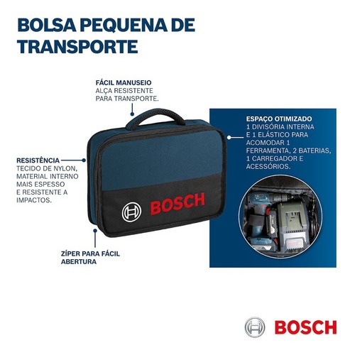 Ficou alguma dúvida? Faça sua pergunta, ficaremos satisfeitos em lhe atender bem. Emitimos Nota Fiscal. Qualidade, preço Justo e atendimento Perfeito. A tecnologia da Bosch molda muitas áreas da sua vida. A garantia de sucesso da empresa baseia-se na sustentabilidade, o que garante o crescimento a longo prazo e, ao mesmo tempo, a proteção ambiental. As furadeiras da Bosch são multi-talentosas para as aplicações mais versáteis e foram projetadas para atender às mais altas demandas em termos de potência e vida útil. Desfrute do máximo controle e precisão em uma ampla variedade de materiais. Esta ferramenta é muito resistente e é capaz de lidar com as aplicações mais complexas no local de trabalho. A Bosch Professional caracteriza-se por um design compacto que proporciona um manuseio ideal e a torna na ferramenta perfeita para trabalhar em altura e em espaços apertados. Tecnologia de excelência Seu mandril de 10 mm permitirá que você manipule facilmente a ferramenta com segurança e precisão. Além disso, sua velocidade variável oferece uma grande experiência de uso, adaptada às suas necessidades e seus requerimentos. Versatilidade e eficiência Use-o para as aplicações que você desejar. Sendo um martelo e parafusadeira, você poderá explorar ao máximo as suas funções e obter precisão e qualidade. A Furadeira de impacto GSB 450 RE possuí o maior controle e ótimo desempenho em todos os materiais, com seu botão de trava facilita os trabalhos contínuos. Escolhas de perfurações com e sem impacto, também com versatilidade para parafusar e desparafusar. Ferramenta apropriada para instaladores em geral, pedreiros, marceneiros e marido de aluguel. • Reversível • Velocidade variável • Botão-trava • Botão comutador Vantagens: • A mais compacta, confiável e acessível da sua classe • Extremamente compacto para trabalhar em locais estreitos e acima da cabeça • Peso reduzido de apenas 1,2 kg para trabalhar sem fadiga Dados técnicos: • Potência nominal absorvida*: 450 W • Peso: 1,2 kg • Nº de rotações em vazio: 0 – 3.100 r.p.m. • Mandril de encaixe do veio da broca: 3/8"-24 UNF • Tamanho do mandril: 10mm • Amplitude de aperto, min./máx.: 1 – 10 mm • Nº máx. de impactos em vazio: 0 – 49.600 i.p.m. • Torque Máximo: 14,73 Nm Faixa de perfuração: • Diâmetro de perfuração em concreto*: 10 mm • Diâmetro de perfuração em madeira*: 20 mm • Diâmetro de perfuração em aço: 10 mm Valores totais de vibração (Perfurar metal): • Valor de emissão de vibrações ah: 4,9 m/s² • Incerteza K: 1,5 m/s² Valores totais de vibração (Perfurar com percussão em concreto): • Valor de emissão de vibrações ah: 11,7 m/s² • Incerteza : 1,5 m/s² Conteúdo da embalagem: • 1 Furadeira de Impacto BOSCH GSB 450 RE 450W • 1 Chave Mandril • Manual de Instruções A Bolsa de transporte para Furadeira/Parafusadeira da Bosch, é a melhor solução para locomoção de suas ferramentas, feita em tecido de nylon de maior resistência, alça para melhor manuseio ela pode comportar a sua Furadeira/Parafusadeira e o acessórios com segurança. Características: • Divisória Interna tipo rede. • Elástico para acomodar ferramentas acessórios. • Resistente a impacto. • Alça de transporte. • Zíper de fácil abertura. O Kit de Acessórios X-Line da Bosch é indicado para ser utilizado em Furadeiras e Parafusadeiras das marcas Bosch e Skil para perfurar pedra. A opção por estojos, maletas e kits é uma tendência que cresce no mercado, sendo cada vez maior o número de pessoas que procuram essa forma prática para transportar e guardar acessórios. Além da praticidade das embalagens, oferece desempenho e durabilidade para resolver necessidades de trabalhos do dia a dia, com uma atraente relação entre custo e benefício. Itens inclusos: - Broca de 3mm - Broca de 4mm - Broca de 5mm - Broca de 5,5mm - Broca de 6mm - Broca de 7mm - Broca de 8mm Cód. Bosch GSB 450: 110v 06011B50D0 / 220v 06011B50E0 Cód. Bosch Bolsa Mini: 1600A003BG Cód. Bosch Kit Brocas: 2607017509 Ficou alguma dúvida? Faça sua pergunta, ficaremos satisfeitos em lhe atender bem. Emitimos Nota Fiscal. Qualidade, preço Justo e atendimento Perfeito.
