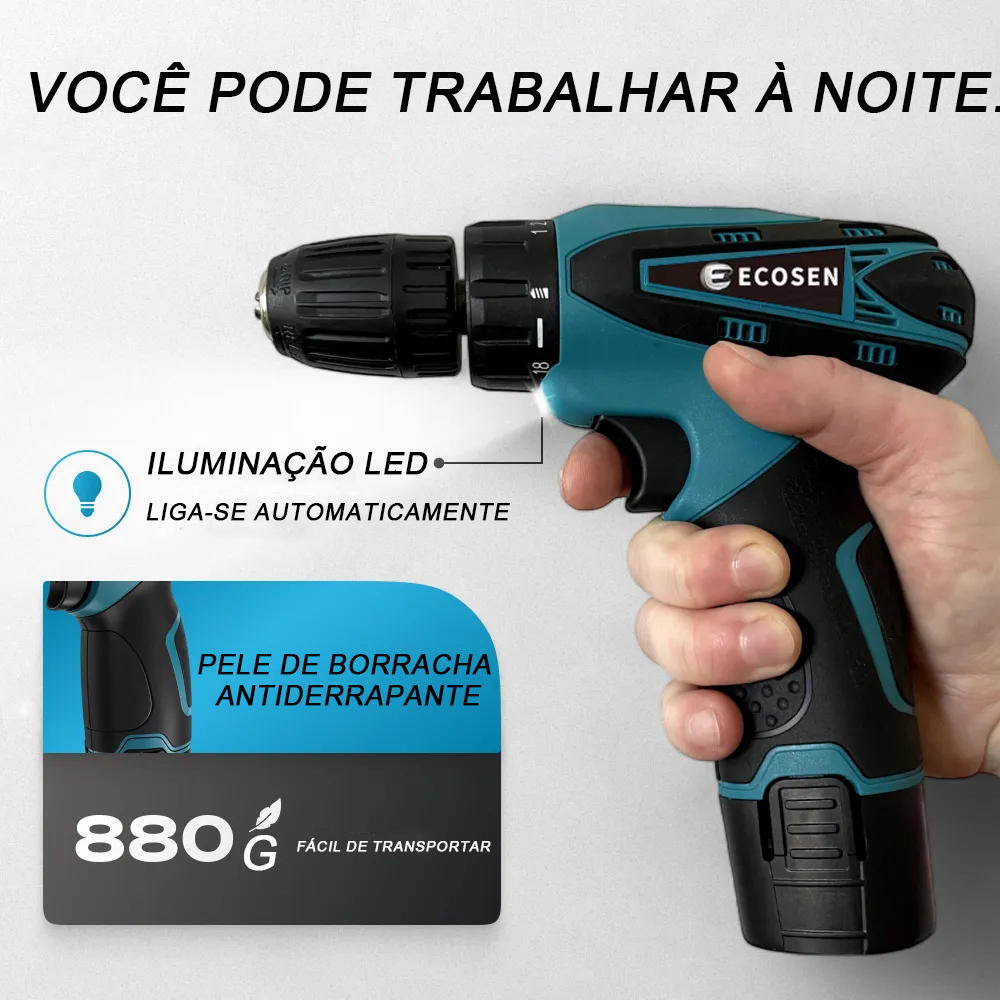 ✨ Bem-vindo à minha loja ✨💰 Siga-nos para obter o mais recente 🛒 Promoções e descontos, onde você pode encontrar os melhores preços e produtos de alta qualidade. 🚀 Enviamos de São Paulo. Seu pedido será enviado dentro de 24 horas 🧡 Caso tenha alguma dúvida, entre em contato conosco. Entre em contato com você o mais rápido possível e faremos o nosso melhor Documentos técnicos - Mandril: 3/8 (10mm) Azul 12 volts Broca de parafuso -01 12V -01 Junta furadeira parafuso. Extensor flexível -01. -01 Carregador duplo-volt. Conector -01 conector. Posições de parafusos -09 posições de parafuso. Soquete de soquete (4-10 mm) -01 pilhas (3900MAH) Processo de 28 nm de processo de 28 nm 0 -1300 revoluções por minuto 220v/110v