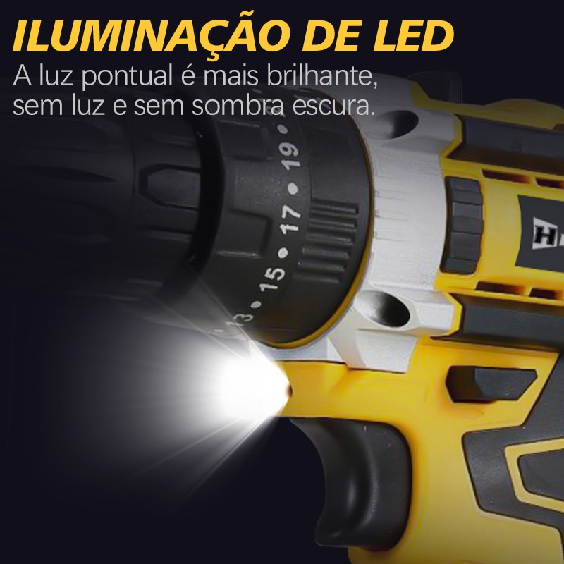 Informações Técnicas: Modelo: G3-Yellow-2 Marca: HUAHUO Bateria: 12V Tipo de bateria: Íons de lítio Carga da bateria: 1,3Ah Tensão do carregador: 110V /240V Bivolt Automático Frequência: 50 Hz/60 Hz Tempo de carregamento da bateria: 2 a 3 horas. Capacidade do mandril: 3/8 Polegada (10,0mm) Tipo de mandril: Aperto Rápido Sistema de reversão: Sim Tipo de velocidade: Variável Iluminação Led: Sim Rotação da furadeira/parafusadeira: 0 - 650/min Velocidade sem carga: 0-450/1450r/min Capacidade máxima de perfuração em madeira: 16,0mm Capacidade máxima de perfuração em aço: 10,0mm Torque 30N.M Ajuste de torque de 25+1 passos Aceleração transmitida nas mãos - braços do operador - ah: 1,379 m/s² Incerteza da aceleração transmitida nas mãos - braços do operador - k:2,4 m/s² Massa aproximada (peso): 1,5kg APLICAÇÕES: - Ideal para perfuração em diversos materiais, como metal, madeira e plástico. - Profissionais da construção, marcenaria, bricolagem e uso doméstico. VANTAGENS: - Facilidade de uso. - Versatilidade. - Durabilidade. - Eficiência. 📦ITENS INCLUSOS: - 1 Parafusadeira Furadeira 12V - 2 Conector de broca de parafusadeira. - 1 Carregador Bivolt. - 2 Baterias De 12V. - 1 Cópia Do Manual De Instruções. - 1 Maleta.