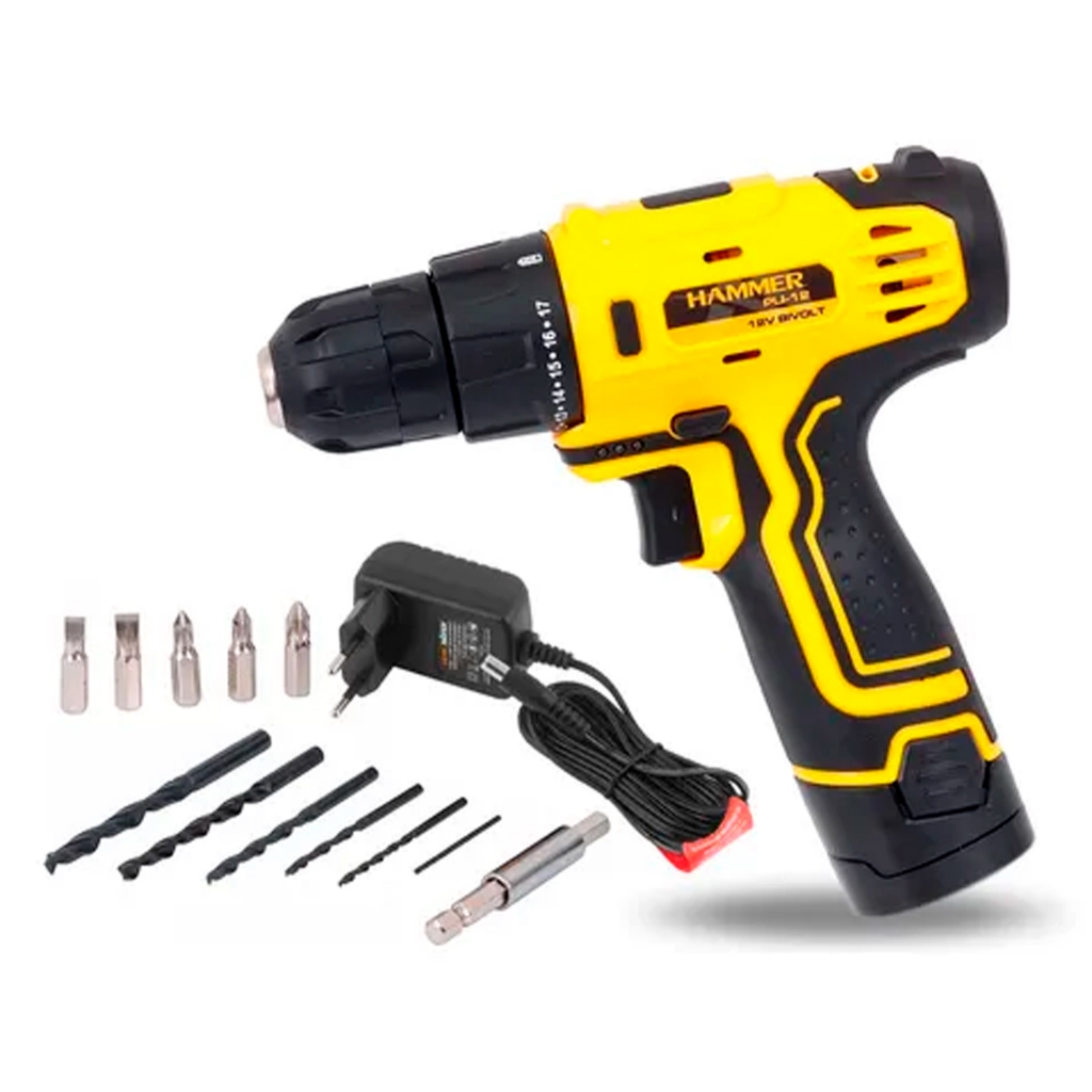 Distribuído por Ismafer Ferramentas FURADEIRA / PARAFUSADEIRA DE LITIO HAMMER 12V - BIVOLT - GYPLI12 A Parafusadeira/Furadeira de 12V lítio, é indicada para uso profissional, pois proporciona resistência e diversas opções de torque. Ideal para fixar e remover parafusos em instalações elétricas, instalação de acessórios e acabamento em carpintaria, montagem e instalação em movelarias. Garanta a Furadeira e Parafusadeira 3/8" 12V GYPLI12 Bivolt Hammer e tenha a solução ideal para pequenos reparos e manutenções em geral. Bateria: Praticidade, você conseguirá realizar trabalhos em locais que não tenham tomadas por perto ou seja necessário uso de extensões. Controle de Torque: É um sistema que controla o quanto de força a sua parafusadeira vai exercer sobre o parafuso, impedindo que você enterre o parafuso no material que está sendo trabalhado, deixando um melhor acabamento. Velocidade variável: Tem velocidade variável reversível, garantindo mais controle ao manusear a ferramenta e mais qualidade no acabamento da peça! Conteúdo da Embalagem: Acompanha parafusadeira, 1 bateria 12V, 13 acessórios, manual de instruções. - Características: :: Velocidade variável e reversível :: 18+ 1 Opção de torque :: Empunhadura Soft Grip :: Led para iluminação :: Indicador de carga de bateria - Especificações técnicas: :: Tensão da Bateria: 12V :: Bateriade Lítio :: Mandril: 3/8" (10mm) :: Rotação (sem carga): 0-700RPM :: Torque Max: 15Nm - Conteúdo da Embalagem: > 1 Parafusadeira/Furadeira > 6 Brocas > Carregador Bivolt > Bateria > 6 Bits > 1 Barra de Extensão - Garantia: 6 meses :: MARCA: HAMMER :: REF: GYPLI12 :: EAN: 7897181961960 :: SKU: 15926 Distribuído por Ismafer Ferramentas