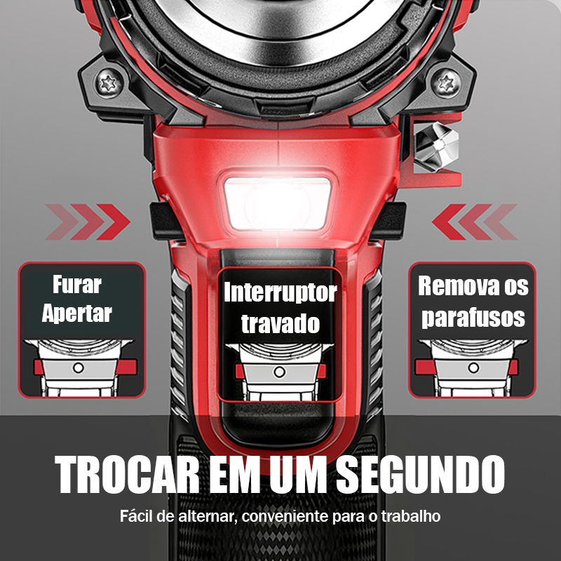 Parafusadeira e Furadeira de Impacto Profissional 21V - Super Kit Completo com 70Nm | Motor BRUSHLESS | 2 Baterias 3.0Ah OFERTA ESPECIAL: Leve não só uma ferramenta, mas uma ESTAÇÃO DE TRABALHO COMPLETA! Este Super Kit Profissional inclui TUDO o que você precisa para começar a trabalhar imediatamente, com mais de 50 acessórios de alta qualidade incluso. Equipada com o revolucionário motor BRUSHLESS, esta furadeira/parafusadeira de impacto oferece 70Nm de torque máximo, eficiência energética superior e vida útil extremamente longa. Com DUAS baterias de 3.0Ah, você nunca para: enquanto uma trabalha, a outra carrega. ✨ POR QUE ESCOLHER ESTE SUPER KIT? KIT MAIS COMPLETO DO MERCADO: Inclui todos os acessórios essenciais e muitos itens avançados, como eixo flexível e adaptador para soquetes. Pronto para uso profissional. MOTOR BRUSHLESS + 2 BATERIAS: Produtividade ininterrupta. Mais potência, mais durabilidade e zero tempo de espera. TORQUE DE 70Nm: Potência para as tarefas mais difíceis: construção, montagem, reformas e muito mais. DUAS VELOCIDADES: (0-650 RPM) para torque máximo e (0-2850 RPM) para furação rápida. 3 FUNÇÕES: Parafusadeira, Furadeira e Furadeira de Impacto. 📦 SUPER KIT - CONTEÚDO DA EMBALAGEM (TUDO INCLUSO): 1. A Ferramenta Principal: 1 x Parafusadeira/Furadeira de Impacto 16.8V Brushless 2. Sistema de Energia (Nunca Pare de Trabalhar): 2 x Baterias de Íon-Lítio 16.8V 2.5Ah 1 x Carregador Rápido Dupla Voltagem (110V/220V) 3. Acessórios Profissionais para Parafusar e Porcas: 1 x Adaptador para Soquetes 1/2" 1 x Jogo de Soquetes (5, 6, 7, 8, 9, 10, 11, 12, 13 mm) 6 x Pontas de Parafuso (Bits) de 50mm - Modelos Mais Usados 4. Acessórios Profissionais para Furação Total: 1 x Eixo Flexível de 250mm (para alcançar lugares difíceis) 1 x Extensão para Broca 3 x Brocas para Madeira (4, 5, 6 mm) 3 x Brocas de Aço Rápido (HSS) para Metal/Madeira (4, 5, 6 mm) 5. Itens de Fixação (Presente Exclusivo!): 30 x Buxas (Parafusos de Expansão) para Fixação em Parede 6. Organização e Suporte: 1 x Bolsa de Transporte Resistente e Durável 1 x Manual do Usuário em Português 📋 ESPECIFICAÇÕES TÉCNICAS: Voltagem: 16.8V Tipo de Motor: Brushless (Sem Escovas) Capacidade da Bateria: 2.5Ah (Li-ion) - 2 UNIDADES Torque Máximo: 60 Nm Rotação sem Carga: 0 - 650 / 0 - 2.850 RPM (2 velocidades) Capacidade do Mandril: 3/8" (10mm) Funções: Parafusadeira, Furadeira, Impacto 🛡️ GARANTIA: Produto com garantia contra defeitos de fabricação. Suporte técnico especializado. ❓ PERGUNTAS FREQUENTES: P: O kit realmente vem com todos esses itens? R: SIM! Você receberá exatamente tudo o que está listado no tópico "SUPER KIT - CONTEÚDO DA EMBALAGEM". É um kit completo para profissionais e entusiastas. P: Para que serve o eixo flexível? R: O eixo flexível é um acessório incrível para alcançar e trabalhar em espaços apertados, curvos ou de difícil acesso onde a ferramenta não entra, proporcionando total flexibilidade. P: Posso usar as soquetes para apertar porcas de roda? R: As soquetes inclusas são para trabalhos gerais de mecânica e montagem. Não recomendamos o uso para apertos de alta torque como rodas de carro, que exigem ferramentas específicas.