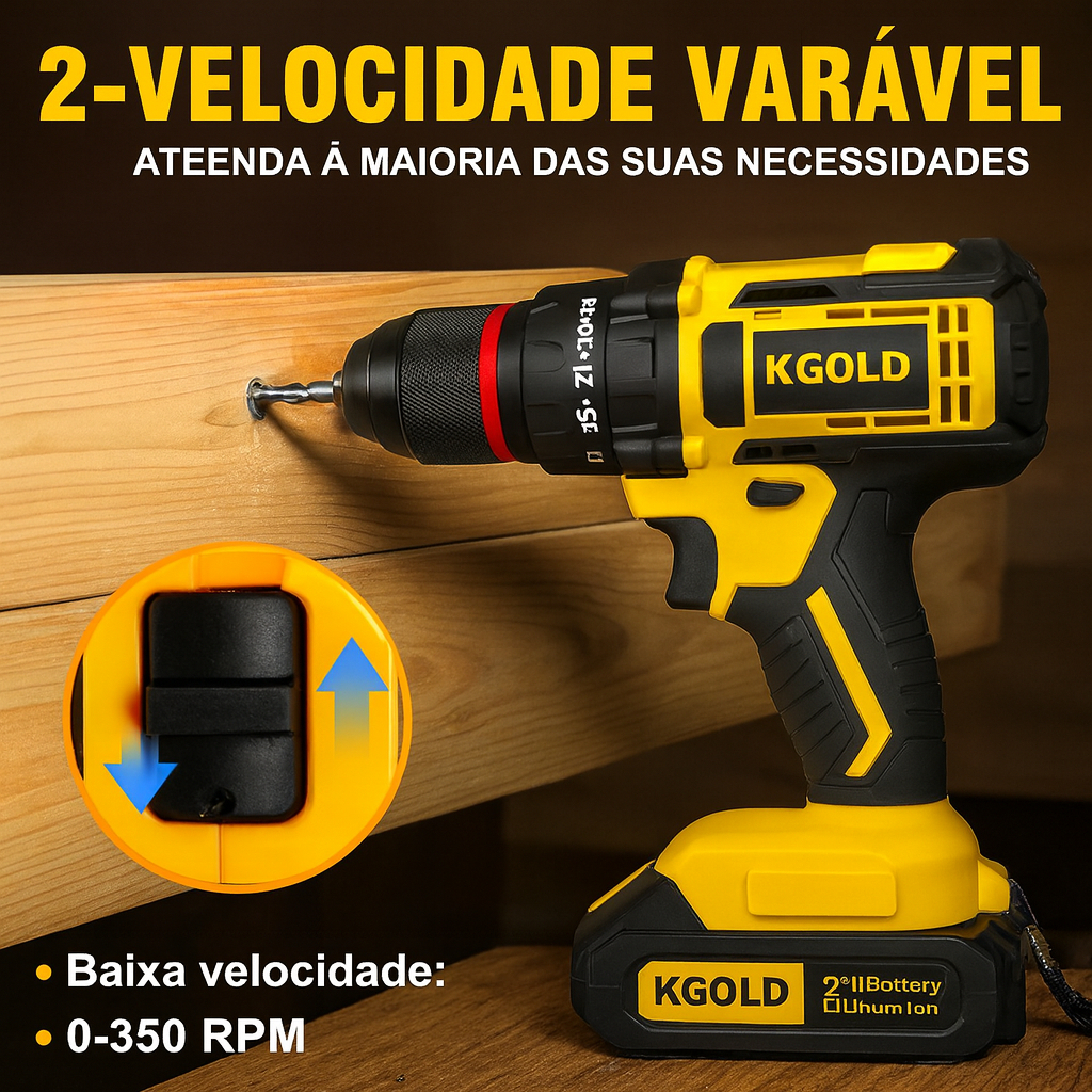 Furadeira Parafusadeira De Impacto Sem Fio KGOLD 21V Profissional, 2 Baterias, LED, Para Metal Madeira Cimento
