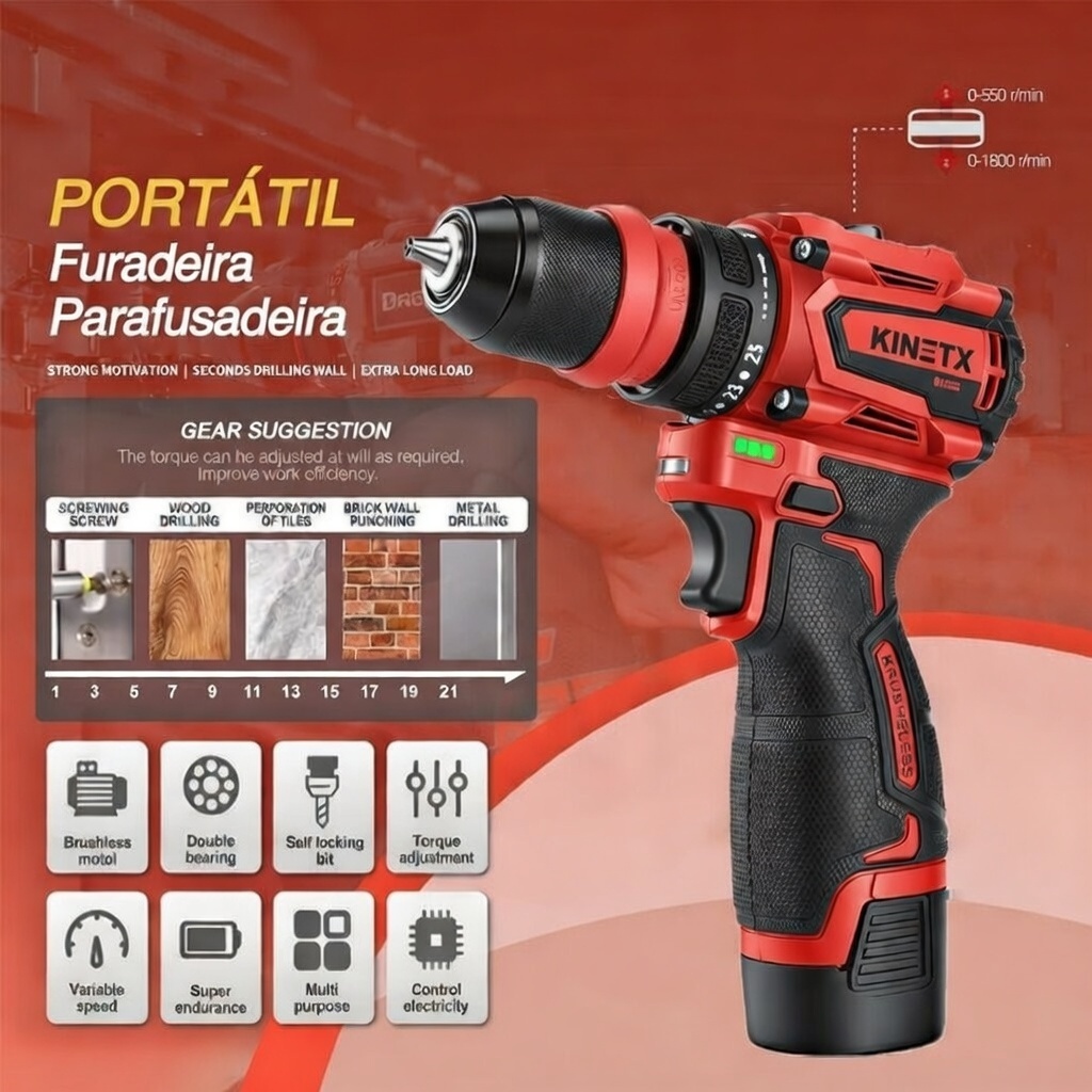 🔥 ESTOQUE NO BRASIL | ENVIO IMEDIATO (2 A 5 DIAS) 🚀 🔥 SOBRE A MARCA : KINETX · Ferramenta poderosa com resultados profissionais, prática e durável! 🔥 OFERTA ESPECIAL SHOPEE! ✨Se você quer uma ferramenta potente, rápida e realmente profissional — esta furadeira brushless 16.8V é a máquina que transforma qualquer serviço pesado em trabalho fácil. ✨ Principais Vantagens ✔ Motor Brushless de Alta Durabilidade Tecnologia sem escovas, com menor atrito e maior eficiência. Gera mais potência, reduz aquecimento e aumenta significativamente a vida útil. ✔ Torque Forte de 35 N.m Perfura e parafusa até em materiais densos como concreto, aço, metal e madeira dura sem esforço. ✔ Controle Preciso com Velocidade Variável Velocidade ajustável (0–2800 RPM) e função de reversão automática para ajustes delicados e trabalhos profissionais. ✔ Duas Baterias 2600mAh de Longa Duração Baterias 16.8V com autonomia estendida — 40% mais capacidade que versões comuns. Trabalhe por muito mais tempo sem interrupções. ✔ Design 3 em 1 com Cabeçote Conversor Exclusivo Mude instantaneamente entre furadeira e parafusadeira. Encaixe de 10mm com troca rápida — substitua o bit com apenas uma mão, economizando tempo no trabalho. ✔ Troca Rápida em 3 Segundos Perfeita para marcenaria, montagem de móveis, manutenção automotiva e construção civil. ✔ Sistema de Dupla Velocidade (Dual Speed) 0–450 RPM (baixa velocidade): ideal para parafusos delicados e controle fino 0–3500 RPM (alta velocidade): perfuração rápida em concreto, aço e madeira ✔ Iluminação LED + Empunhadura em Borracha Melhora a precisão e oferece mais segurança em áreas escuras. 🔧 Especificações • Voltagem: 16.8V • Tipo de motor: Brushless com função impacto • Tamanho do mandril: 10 mm • Ajustes de torque: 25 + 1 • Bateria: 2× 2600mAh (16.8V) • Velocidades: - Baixa: 0–900 RPM - Alta: 0–2900 RPM • Aplicações: metal, madeira, aço leve, bricolagem e manutenção doméstica • Compatibilidade: 110V / 127V / 220V (bivolt) • Torque máximo: 35 N.m • Frequência: 60 Hz • Empunhadura: borracha antiderrapante • LED: iluminação frontal embutida • Modos: 3 modos ajustáveis (Furar / Parafusar / Impacto) 📦 Conteúdo da Embalagem ✔ 1 × Furadeira/Parafusadeira 2 em 1 ✔ 2 × Baterias 16.8V 2600mAh ✔ 1 × Carregador rápido ✔ 1 × Maleta resistente ✔ 6 × Pontas de parafusadeira ✔ 3 × Brocas para madeira/metal ✔ 3 × Brocas centrais ✔ 9 × Chaves hexagonais ✔ 1 × Broca para concreto ✔ 1 × Extensor flexível 🛠️ Como Usar (Passo a Passo Profissional) 🔩 Para parafusar: - Instale o cabeçote conversor no mandril - Selecione baixa velocidade (LED verde aceso) 🕳️ Para furar: - Retire o conversor e insira a broca adequada - Ajuste para alta velocidade (LED vermelho aceso) 🔨 Função impacto: - Retire o conversor e insira a broca - Selecione o modo impacto + alta velocidade (LED vermelho aceso) 🛡️ GARANTIA E SUPORTE: Somos vendedores locais no Brasil e confiamos na nossa qualidade! Oferecemos 3 meses de garantia. Troca: O produto com defeito pode ser substituído individualmente em até 1 mês. Frete: O custo de envio para substituição dentro de 1 semana é suportado por nós (vendedor). Após 1 semana, o custo de envio é por conta do comprador. ❓ Dúvidas Frequentes: · O produto é novo? - Sim, novo, na caixa e com garantia. · Tem a pronta entrega? - Sim, estoque no Brasil. 🛒 Aproveite o preço promocional e garanta já o seu !