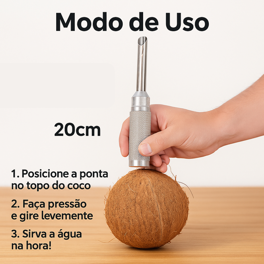 Furador de Coco Aço Inox Reforçado 20cm Alta Resistência Cabo Antiderrapante Abridor Manual