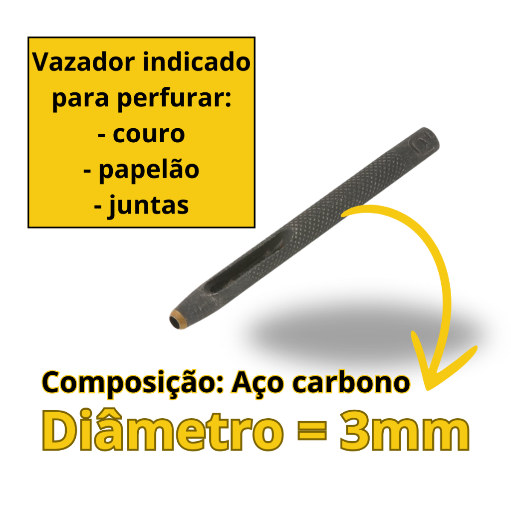 Furador Vazador 3mm Aço Couro Eva Junta Papelao Vonder - Vazador De Aço 3mm - Cilíndrico
