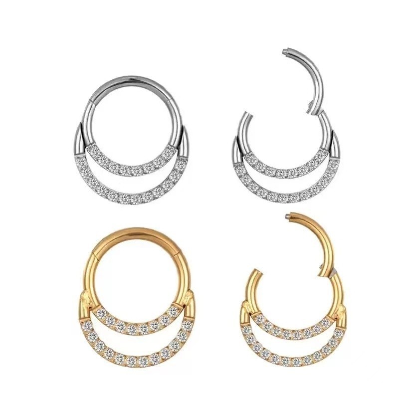 - Espessura Da Haste: 1.2 mm - Diâmetro da argola: 6/8/10mm - Material: Aço cirúrgico - Pedra: Zircônia - Fecho: Segmento Articulado - Podendo ser Usado: Septril, Rook, Conch, Nariz - Quantidade: 1 unidade Lembrando que: Cada pessoa tem formato de corpo / local de aplicação (mais pra dentro/fora), então varia com tamanho de jóia. Fácil Colocação e Remoção *PVD - É uma tecnologia utilizada para a deposição de filmes metálicos finos sobre diversos tipos de substratos. O processo é realizado, sob vácuo, onde os metais a serem depositados são evaporados. É particularmente indicado para aqueles produtos inovadores e de qualidade que necessitam atender elevados padrões e permite ainda obter uma vasta gama de cores. - Elevada resistência ao desgaste e abrasão; - Resistência ao suor e transpiração humanos; - Hipoalergênicos.