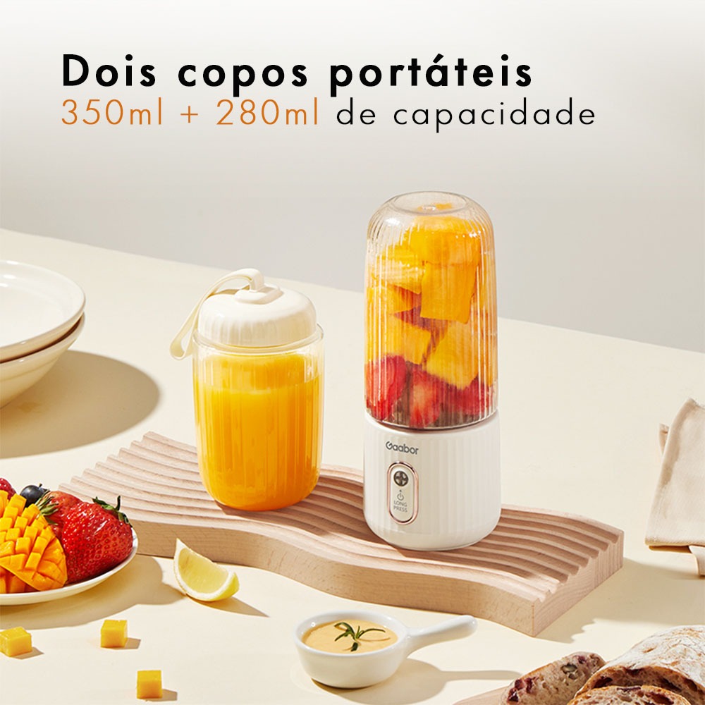 Gaabor Espremedor de Frutas Portátil USB de Bolso 4 Lâminas Bateria de Grande Capacidade 350ml+280ml FP03T