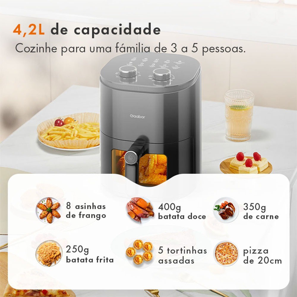 Gaabor Fritadeira Air Fryer 4,2L Botão Duplo Grande Janela de Visualização AF-45M02A