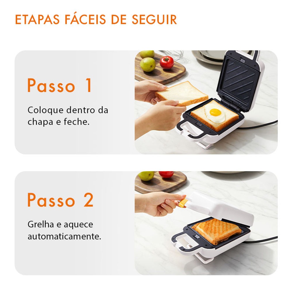 Gaabor Sanduicheira elétrica Aquecimento de temperatura constante de dupla face Frigideira antiaderente SM60M-WH01A -1