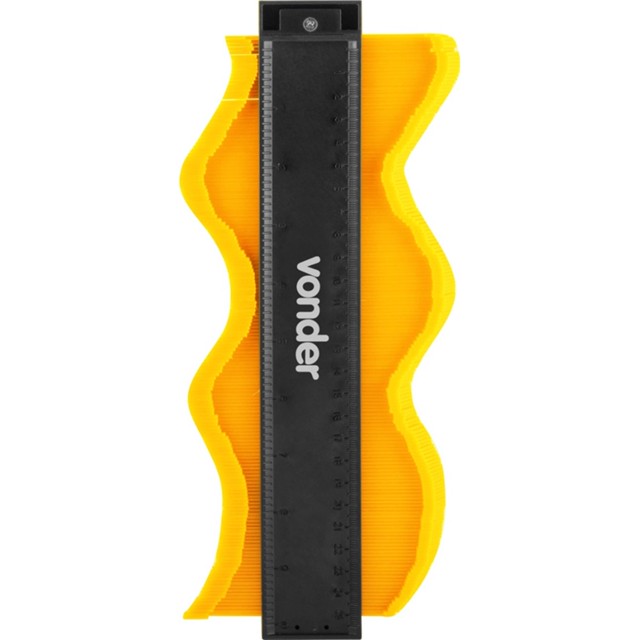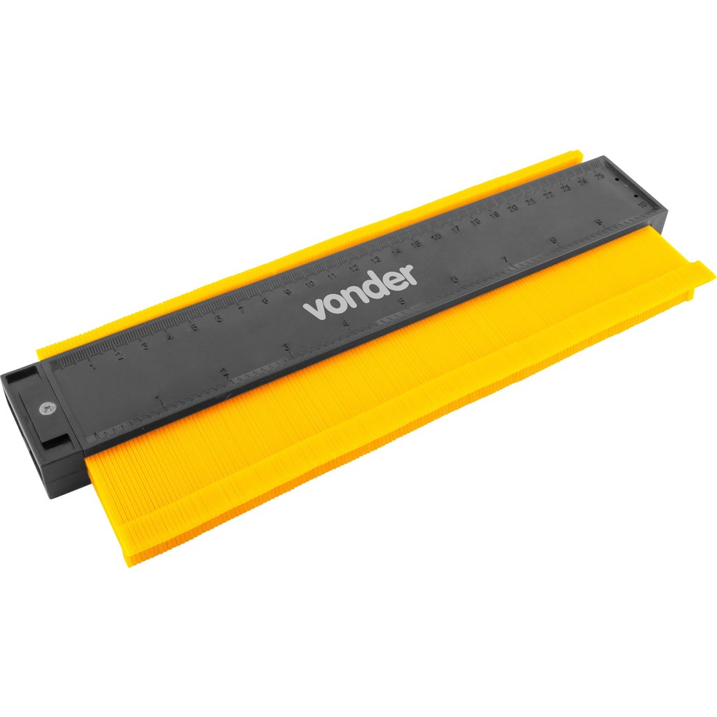 Marca: Vonder Conteúdo da embalagem: 1 Gabarito. Destaques e diferenciais: Possui fácil aplicação, basta pressionar as cerdas do gabarito contra o objeto que deseja copiar o contorno. Aplicações e dicas de uso: Indicado para copiar contornos. Detalhes Técnicos Graduação da escala: 25 cm Material (tipo/composição): Plástico Dimensões: 282 mm x 102 mm Massa aproximada (peso) (kg): 0,415 kg Garantia - E (CDC): Garantia legal: 90 dias