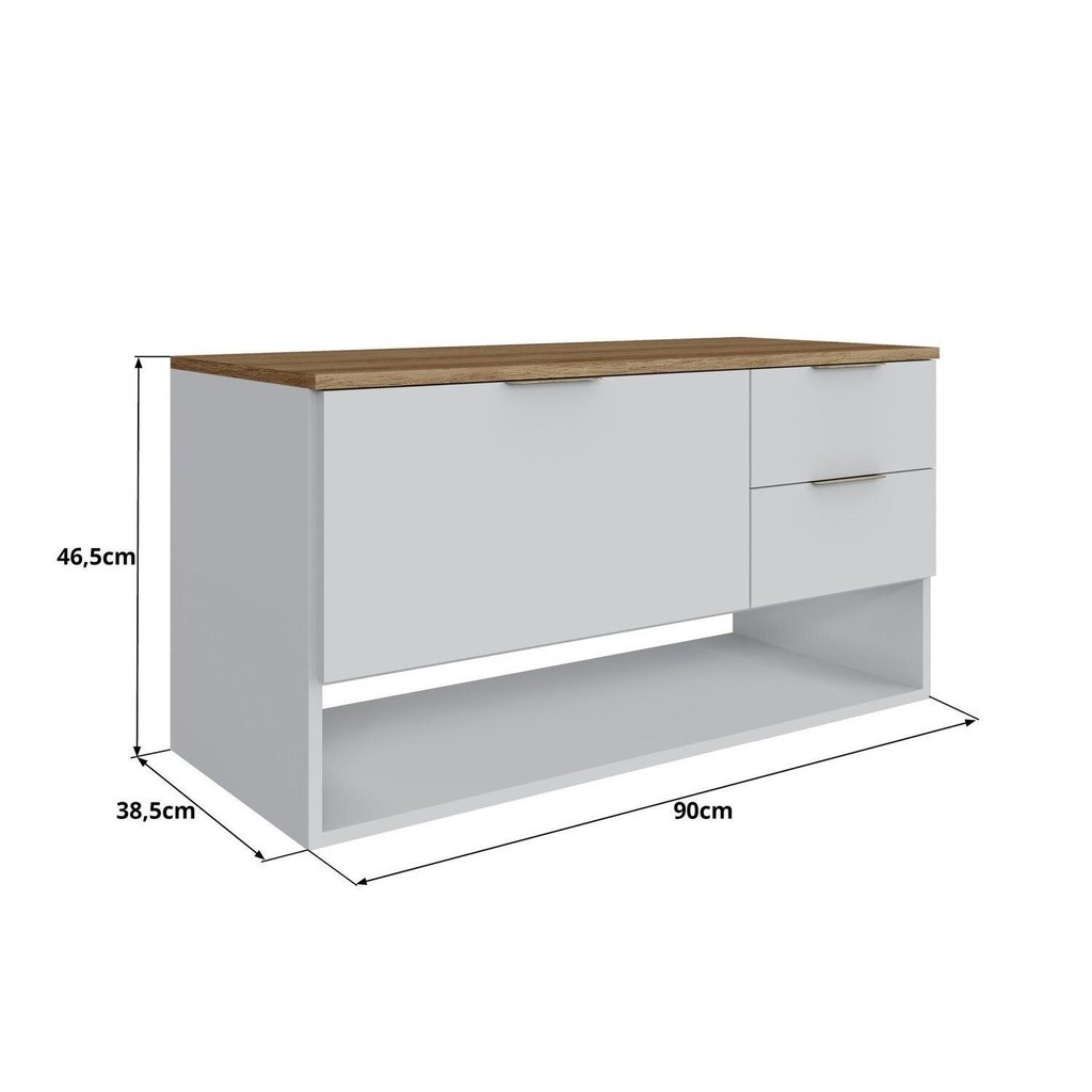 O gabinete de banheiro Ba307 é ideal para você organizar e armazenar itens de higiene pessoal, toalhas e outros produtos. Funcional e decorativo, ele contribui para a organização do ambiente, a estética do banheiro e a praticidade do dia a dia. Não acompanha cuba. Estilo: Moderno Peso (kg): 22 Garantia: 03 Meses Altura (cm): 46.5 Acabamento: Finish Foil Largura (cm): 90 Possui Pés: Suspenso Cor da Porta: Branco Possui Sifão: Não Possui Tampo: Sim Possui Nichos: 1 Possui Portas: Sim Tipo de Porta: Basculante Acompanha Cuba: Não Possui Gavetas: Sim Suporta Até (kg): 20 Possui Espelhos: Não Profundidade (cm): 38.5 Escala de Brilho: Fosco Gaveta com Chave: Não Tipo de Gabinete: Gabinete Suspenso Material da Porta: MDP Material do Tampo: MDP Origem do Produto: Nacional Ambiente Principal: Banheiro Material da Gaveta: MDP Material Principal: MDP Possui Prateleiras: Não Acabamento da Porta: Finish Foil Sapatas Niveladoras: Não Tamanho do Gabinete: Grande: Acima de 80cm de largura Acabamento da Gaveta: Finish Foil Possui Tampo de Vidro: Não Material da Prateleira: MDP Peso Máximo por Gaveta: 5 Espessura da Prateleira: 1.5 Acabamento da Prateleira: Finish Foil Tipo de Puxador da Porta: Externo Comprimento da Prateleira: 57.3 Escala de Brilho da Porta: Fosco Tipo de Puxador da Gaveta: Externo Escala de Brilho da Gaveta: Fosco Peso Máximo por Prateleira: 5 Tipo de Corrediça da Gaveta: Metálica Simples Tipo de Móvel para Banheiro: Gabinete Furação Para Cuba e Torneira: Não Material do Puxador da Porta: Plástico Material do Puxador da Gaveta: Plástico Tipo de Móvel para o Banheiro: Gabinete de Banheiro Acompanha Manual de Instalação: Sim Escala de Brilho da Prateleira: Fosco Possui Recorte No Tampo Para Cuba: Não Tipo de Dobradiça/Corrediça da Porta: Metálica Possui Recorte No Tampo Para Misturador: Não Acompanha Parafusos Para Fixação Na Parede: Sim Marca: DJD Móveis Cor Flex: Não Cor Interna: Branco Cor: Branco/Mel Cor do Produto: Branco/Mel Itens Inclusos: 1 Gabinete e Manual de Montagem Cor Predominante: Branco Linha ou Coleção: BA307 Quantidade de Prateleiras: 01 Prateleira Tamanho Indicado Para Cuba: 34cm x 33,5cm Quantidade de Gavetas: 02 Gavetas