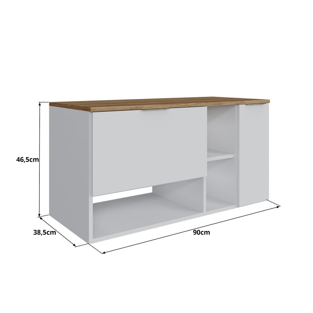 Um gabinete funcional e que agrega estilo ao seu banheiro, assim é o Ba308. Um móvel que contribui na organização do itens de higiene pessoal, toalhas e demais pertences. Torne o seu bainheiro moderno elegante com o Ba308. Não acompanha cuba. Estilo: Moderno Peso (kg): 20.5 Garantia: 03 Meses Altura (cm): 46.5 Acabamento: Finish Foil Largura (cm): 90 Possui Pés: Suspenso Cor da Porta: Branco Possui Sifão: Não Possui Tampo: Sim Possui Nichos: 3 Possui Portas: Sim Tipo de Porta: Misto (Abrir e Basculante) Acompanha Cuba: Não Possui Gavetas: Não Suporta Até (kg): 20 Possui Espelhos: Não Profundidade (cm): 38.5 Escala de Brilho: Fosco Tipo de Gabinete: Gabinete Suspenso Material da Porta: MDP Material do Tampo: MDP Origem do Produto: Nacional Ambiente Principal: Banheiro Material Principal: MDP Possui Prateleiras: Sim Acabamento da Porta: Finish Foil Sapatas Niveladoras: Não Tamanho do Gabinete: Grande: Acima de 80cm de largura Possui Tampo de Vidro: Não Material da Prateleira: MDP Espessura da Prateleira: 1.5 Acabamento da Prateleira: Finish Foil Tipo de Puxador da Porta: Externo Comprimento da Prateleira: 16 Escala de Brilho da Porta: Fosco Peso Máximo por Prateleira: 5 Tipo de Móvel para Banheiro: Gabinete Furação Para Cuba e Torneira: Não Material do Puxador da Porta: Plástico Tipo de Móvel para o Banheiro: Gabinete de Banheiro Acompanha Manual de Instalação: Sim Escala de Brilho da Prateleira: Fosco Possui Recorte No Tampo Para Cuba: Não Tipo de Dobradiça/Corrediça da Porta: Metálica Possui Recorte No Tampo Para Misturador: Não Acompanha Parafusos Para Fixação Na Parede: Sim Marca: DJD Móveis Cor Flex: Não Cor Interna: Branco Cor: Branco/Mel Cor do Produto: Branco/Mel Itens Inclusos: 1 Gabinete e Manual de Montagem Cor Predominante: Branco Linha ou Coleção: BA308 Quantidade de Prateleiras: 02 Prateleiras Tamanho Indicado Para Cuba: 34cm x 33,5cm