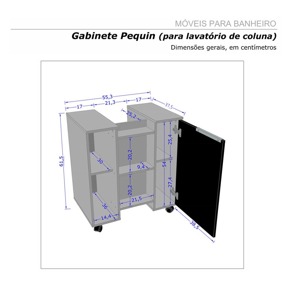 Gabinete Armario Banheiro Para Pia de Coluna Pequin Cor Branco