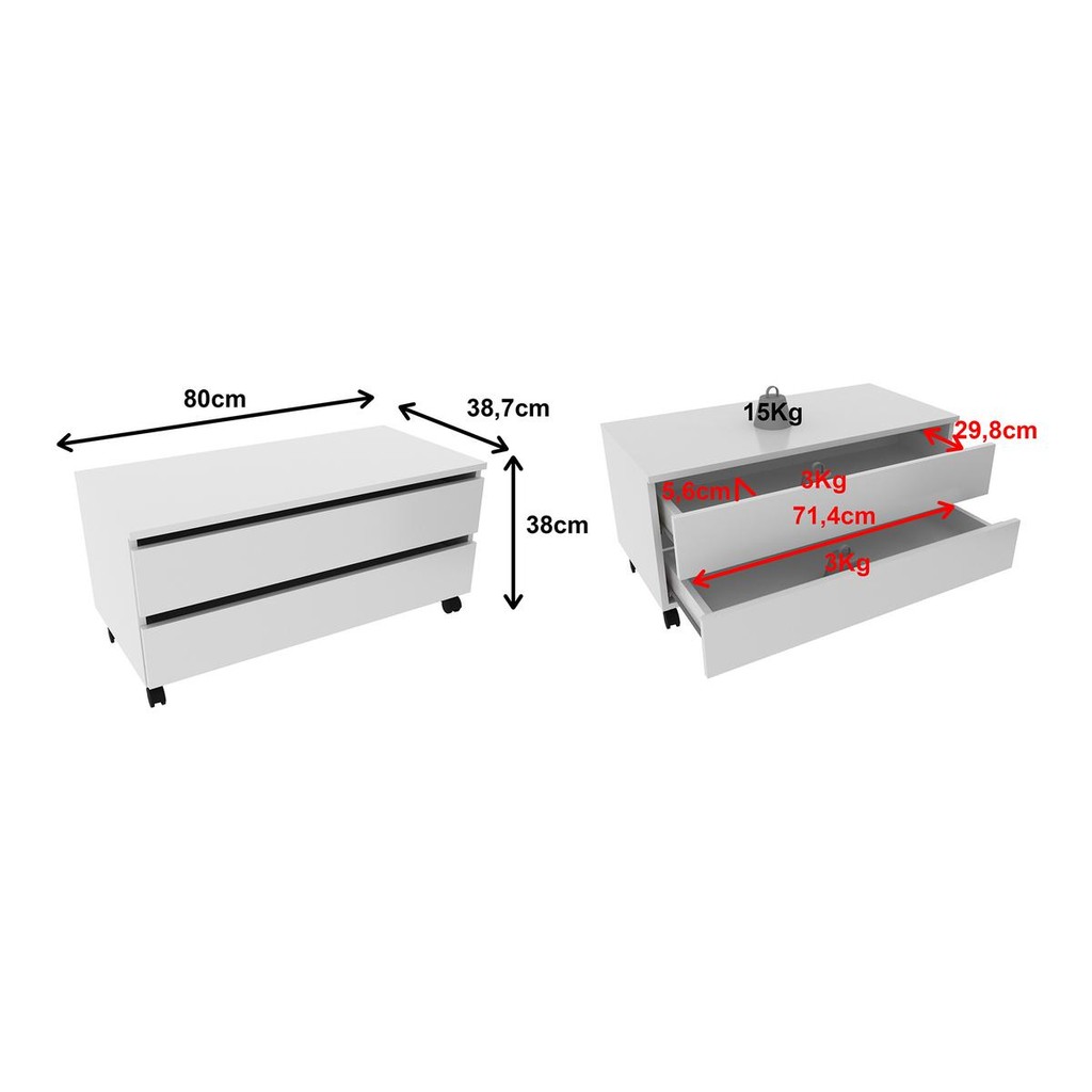 Gabinete Banheiro 2 Gavetas com Rodízios 80cm Multimóveis VCR10083