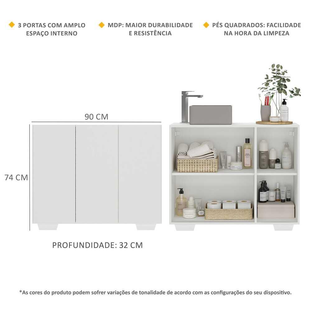 Gabinete Banheiro 3 Portas 90cm Multimóveis MP5031 Branco