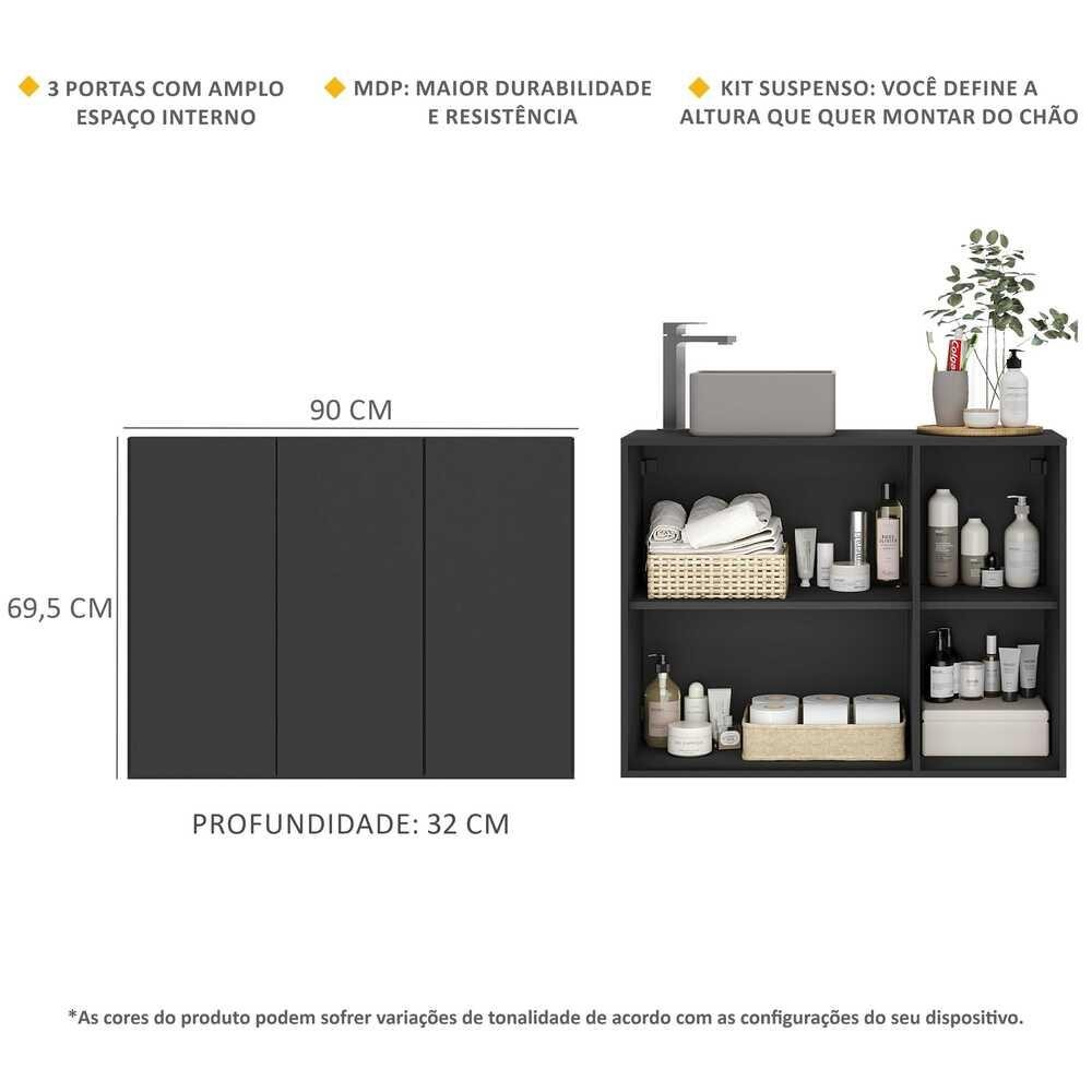 Gabinete Banheiro 3 Portas Suspenso 90cm Multimóveis V5029