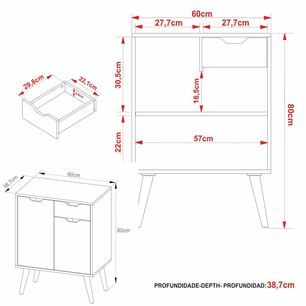 O Gabinete Banheiro 60cm 2 Portas e 1 gaveta Retrô Multimóveis CR10118 é a escolha perfeita para trazer modernidade e elegância ao seu banheiro. Sua estrutura em MDP garante resistência e durabilidade. Com duas portas e uma gaveta com corrediças metálicas, oferece amplo espaço interno para organizar seus itens de higiene pessoal. Os pés retrô palito em PVC adicionam charme ao design, tornando-o uma peça única no ambiente do seu banheiro. O produto NÃO acompanha cuba. Conteúdo da Embalagem: 1 (um) Gabinete Manual de Montagem Kit Ferragem Dimensões do produto montado: Altura: 80cm | Largura: 60cm | Profundidade: 38,7cm *Você pode consultar as medidas detalhadas na imagem técnica do produto. *As cores do produto podem sofrer variações de tonalidade de acordo com as configurações do seu dispositivo. Imagem meramente ilustrativa. Decoração não acompanha o produto. O produto será entregue desmontado e não disponibilizamos o serviço de montagem.