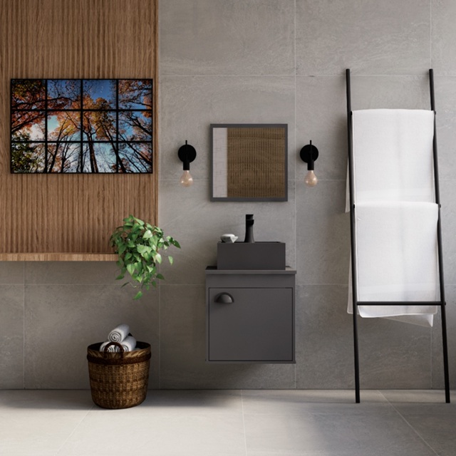 Conjunto Gabinete Perugia RIVERZZA Renove o visual do seu banheiro com o Gabinete Perugia RIVERZZA, um modelo suspenso que combina design moderno, praticidade e resistência. Com estrutura em MDF de alta durabilidade e cuba em BMC branca, este conjunto garante charme e funcionalidade para qualquer ambiente. Ideal para otimizar espaços, possui porta única e furação pronta para cuba e torneira. Itens Inclusos: 1 Gabinete de banheiro 1 Pia 1 Kit de montagem (não acompanha espelho) Dimensões e peso: Gabinete: 35cm x 41cm x 40cm | Peso: 10 KG | Suporta até 10 KG Cuba: 29,5cm x 12,5cm x 29cm | Furo da torneira: 3,3cm | Furo do ralo: 3,5cm | Espaço para água: 11cm Embalagem desmontada: 35,5cm x 23cm x 40,5cm | Peso: 10,5 KG Características do produto: Material principal: MDF Porta: 01 com puxador externo em plástico Gavetas: não possui Rodízio e pés: não possui Estilo moderno, nacional Montagem simples e de baixa complexidade, pode ser feita por uma pessoa Garantia do fornecedor: 03 meses Recomendações de uso: Limpar com pano levemente umedecido para preservar o acabamento.
