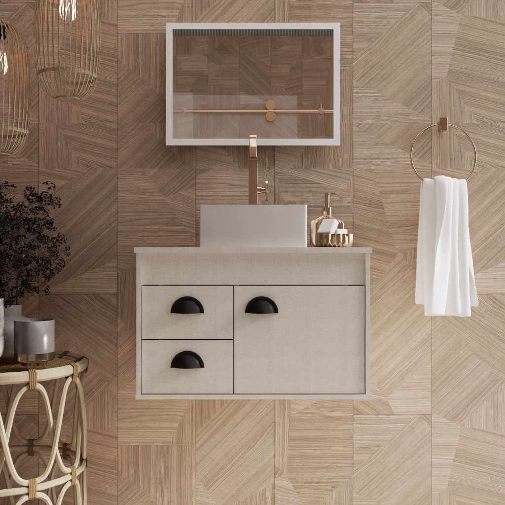 Conjunto Gabinete Udine RIVERZZA Transforme o seu banheiro com o Gabinete Udine RIVERZZA, um modelo suspenso que une design moderno, funcionalidade e resistência. Com estrutura em MDF de alta durabilidade e cuba em BMC branca, este conjunto é ideal para quem busca praticidade e charme em um só produto. Conta com duas gavetas e porta única, além de furação pronta para cuba e torneira. Itens Inclusos: 1 Gabinete de banheiro 1 Pia 1 Kit de montagem (não acompanha espelho) Dimensões e peso: Gabinete: 35cm x 40cm x 63cm | Peso: 15 KG | Suporta até 10 KG Cuba: 29,5cm x 12,5cm x 29cm | Furo da torneira: 3,3cm | Furo do ralo: 3,5cm | Espaço para água: 11cm Embalagem desmontada: 35,5cm x 26cm x 63,5cm | Peso: 15,8 KG Características do produto: Material principal: MDF Porta: 01 com puxador externo em plástico Gavetas: 02 Rodízio e pés: não possui Estilo moderno, nacional Montagem simples e de baixa complexidade, pode ser feita por uma pessoa Garantia do fornecedor: 03 meses Recomendações de uso: Limpar com pano levemente umedecido para preservar o acabamento.