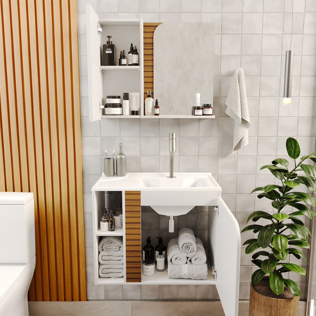 Gabinete Banheiro Lotus com 2 Portas Espelheira e Cuba
