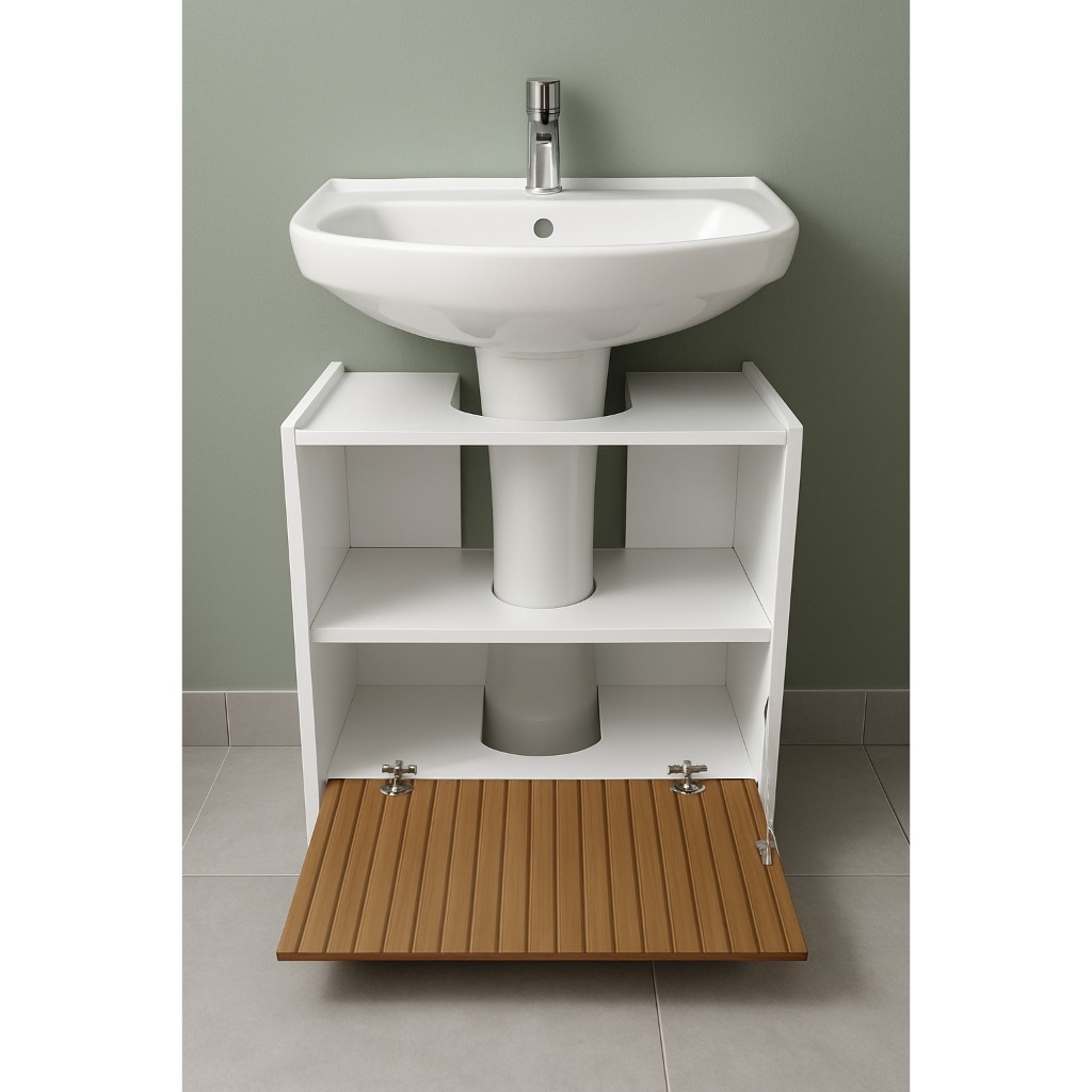 Gabinete Coluna para Pia de banheiro 1 Porta e com Prateleira Organizadora Branco Ripado