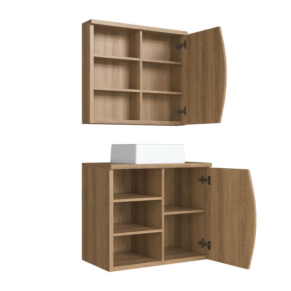 Transforme o seu banheiro com o Conjunto para Banheiro CJ9680 da Faema, que une charme, organização e funcionalidade em um só produto. Com design sofisticado e detalhes usinados nas portas, o conjunto é perfeito para quem busca um ambiente elegante sem abrir mão da praticidade no dia a dia. Composto por gabinete com nichos e espelheira com porta espelhada, ele já vem com cuba branca em mármore sintético, pronta para instalação. PRINCIPAIS BENEFÍCIOS DO CONJUNTO 9680: - Design moderno e elegante, com acabamento ripado que valoriza o ambiente. - Espaço otimizado para organização com prateleiras internas e nichos externos. - Cuba branca inclusa, economizando tempo e custo na hora da instalação. - Ideal para banheiros compactos ou médios, com ótimo aproveitamento de espaço. - Fabricado em MDP com acabamento fosco, garantindo durabilidade e fácil limpeza. CARACTERÍSTICAS TÉCNICAS: Gabinete: - Cor: Mel - Dimensões: 60 x 70 x 40 cm (AxLxP) - Peso: 24,7 kg - Material: MDP 15 mm e 25 mm com acabamento fosco - Fundo: MDP 3 mm - Peso suportado total: até 30 kg - Porta: 1 porta de bater com dobradiças metálicas - Prateleiras internas: 3 (espessura: 1,5 cm | suporta até 10 kg cada) - Nichos abertos: 3 espaçosos - Tampo incluso: 70 x 40 cm (espessura: 2,5 cm) - Fixação na parede: Sim - Limpeza: Pano levemente umedecido com água (não usar produtos abrasivos). Espelheira: - Cor: Mel - Dimensões: 61 x 70 x 14 cm (AxLxP) - Peso: 13,5 kg - Material: MDP 15 mm e 25 mm com acabamento fosco - Espelho incluso: Sim – 59 x 40 cm (espessura: 3 mm) - Porta: 1 com dobradiças metálicas - Prateleiras internas: 2 - Nichos externos: 3 - Total de prateleiras: 4 (espessura: 1,5 cm | suporta até 5 kg cada) - Fixação na parede: Sim. Cuba: - Cor: Branca - Material: Mármore sintético - Dimensões (AxLxP): 9 x 32 x 30 cm - Inclusa no conjunto. Solução prática e sofisticada para o seu banheiro! Adquira agora o Conjunto Faema CJ9680 e garanta um ambiente mais bonito, organizado e completo com gabinete, espelheira e cuba inclusos.