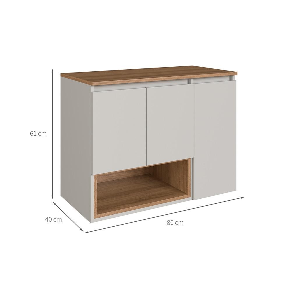 Que tal o Gabinete de Banheiro Cecília? Para conquistar seu banheiro dos sonhos, aposte no Gabinete Cecília. Com estrutura clean e versátil, o móvel tem ótimo espaço interno para organizar itens de beleza e higiene - ou toalhas e produtos que precisam ficar sempre ao alcance. Ideal para ser utilizado suspenso, ele também pode ser complementado com um armário aéreo, ou você pode deixá-lo sozinho e deixar sua decoração leve e sofisticada. Lindo, né? Daí você só precisa comprar sua cuba dos sonhos e deixar o banheiro completo :) Cor: Branco Garantia em Meses: 3 Cores do Produto: Branco Instruções/Cuidados: Limpeza com pano levemente umedecido Conteúdo da Embalagem: 1 Gabinete (Não Acompanha Cuba) - Entregue em: 1 Volume Modelo: Cecília Número de Volumes: 1 Material: O Gabinete de Banheiro Cecília possui estrutura em MDP 15 mm, portas articuladas com dobradiças metálicas e acabamento fosco Material para Filtro: MDP Descrição do Tamanho: Altura: 61 cm | Largura: 80 cm | Profundidade: 40 cm Altura do Produto (cm): 61 Largura do Produto (cm): 80 Comprimento do Produto (cm): 40 Peso do Produto (Kg): 22 Produto precisa de Montagem?: Sim, sugerimos a contratação do nosso serviço de montagem (para os CEPs em que o serviço está disponível) ou de algum profissional experiente de sua preferência Número de portas: 3 Número de gavetas: Sem gavetas Número de Prateleiras: 2 Material da dobradiça/trilho da porta: Metal Material da estrutura: MDP Necessita fixação na parede: Sim Possui Cuba (pia): Não Possui espelho/vidro: Não Possui tampo: Sim Tipo de Porta: Articulada Material do Tampo: MDP PROFUNDIDADE x LARGURA x ALTURA: 40 x 80 x 61 Fornecedor: FAEMA INDUSTRIA DE MÓVEIS LTDA Baterias são necessárias?: Não Certificação de teste externa: Não Componentes incluídos: Não Is Fragile: Não Número da peça: Não Produto: Gabinete Tamanho do Móvel: Não se aplica