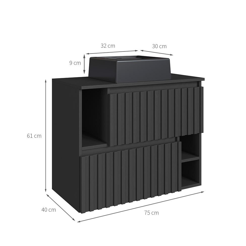 Gabinete de Banheiro com Cuba Luiza II 2 PT Grafite