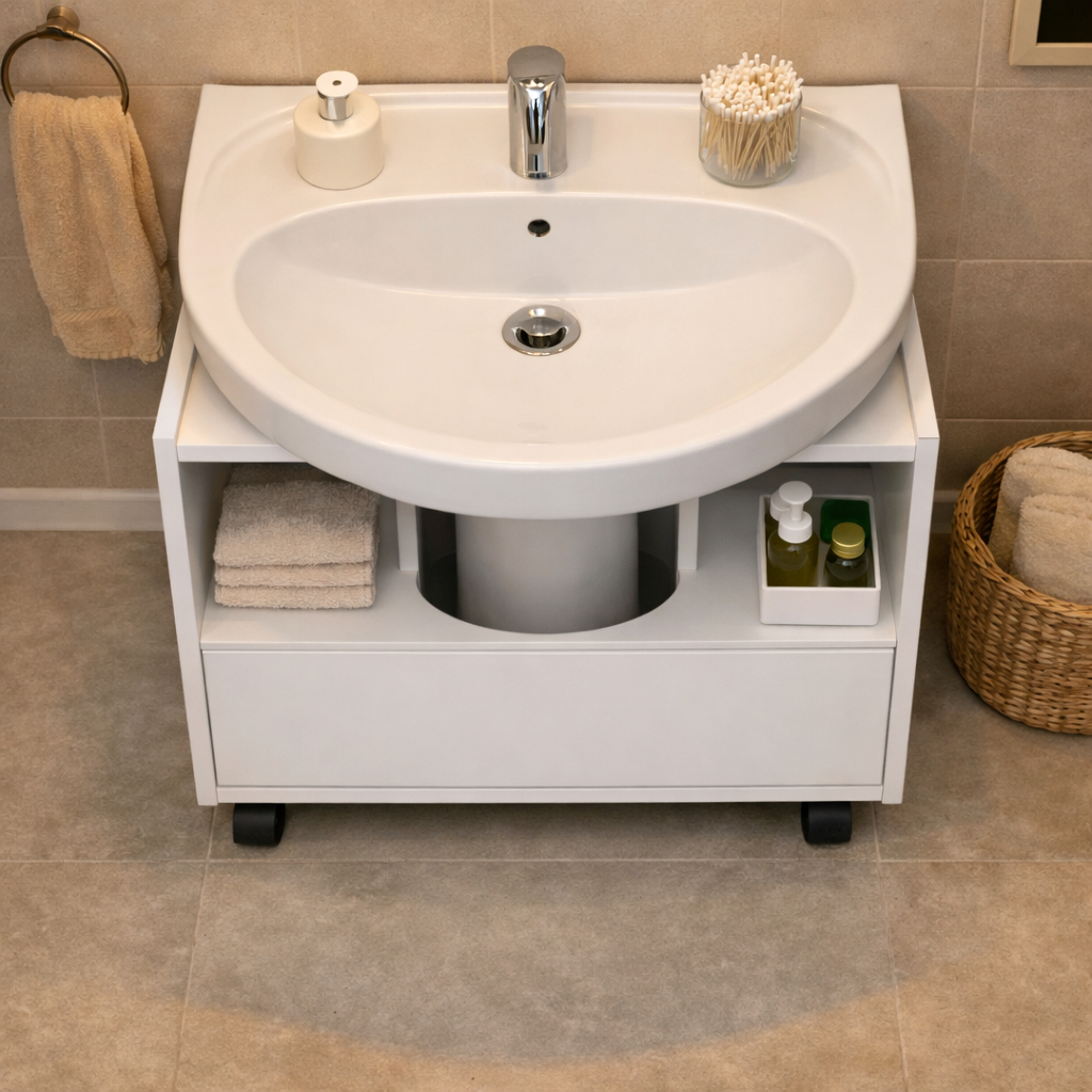 ✨ Gabinete Aqua para Banheiro com Rodízios – Praticidade e Estilo no Dia a Dia 🚿 O Gabinete Aqua foi desenvolvido para quem busca funcionalidade, organização e um visual moderno no banheiro. Compacto e inteligente, ele se encaixa perfeitamente abaixo da pia, entre a coluna do lavatório, aproveitando melhor o espaço sem comprometer a estética do ambiente. Ideal para banheiros pequenos, o Gabinete Aqua une praticidade e design contemporâneo, facilitando a rotina e mantendo tudo sempre bem organizado. 🛁 Principais benefícios: ✔ Estrutura com 1 porta, oferecendo acesso prático e organização discreta ✔ 3 prateleiras internas, ideais para armazenar produtos de higiene, limpeza e toalhas ✔ Design moderno com acabamento ripado, valorizando o ambiente ✔ 4 rodízios, que facilitam a movimentação e a limpeza do banheiro ✔ Compatível com colunas de até 17,7 cm de largura ✔ Fabricado em MDP de alta qualidade, garantindo resistência e durabilidade ✔ Modelo compacto, funcional e versátil 📏 Dimensões aproximadas do produto: ▪ Altura: 61,5 cm ▪ Largura: 55 cm ▪ Profundidade: 34,8 cm 📦 Conteúdo da embalagem: ✔ 1 Gabinete Aqua para Banheiro ✔ Manual de montagem ⚠️ Informações importantes: – Produto entregue desmontado, com manual incluso – Montagem de responsabilidade do comprador – Não acompanha pia ou cuba – Objetos decorativos das imagens não acompanham o produto ✨ Casa Justiniano — praticidade, organização e design inteligente para valorizar cada detalhe do seu banheiro.