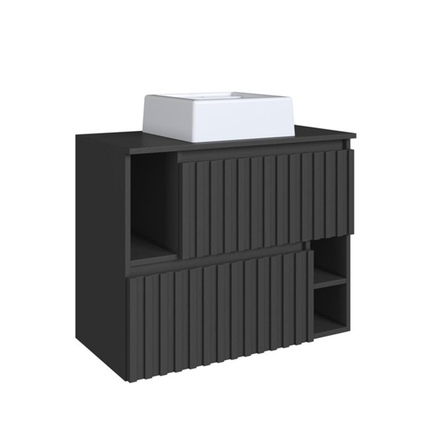 Gabinete de Banheiro Suspenso 75cm com Cuba 2 Portas Basculante Grafite Luiza BL1000 - Faema Móveis