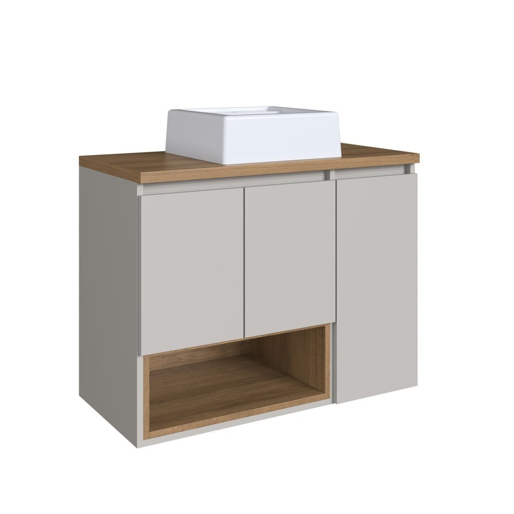 Gabinete de Banheiro Suspenso 80cm Cecília com 3 Portas e 1 Nicho com Cuba Mel/Arenas