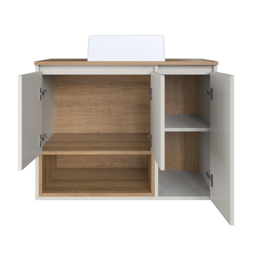 Gabinete de Banheiro Suspenso 80cm com Cuba 3 Portas Mel/Arenas Cecília BL9220 - Faema Móveis