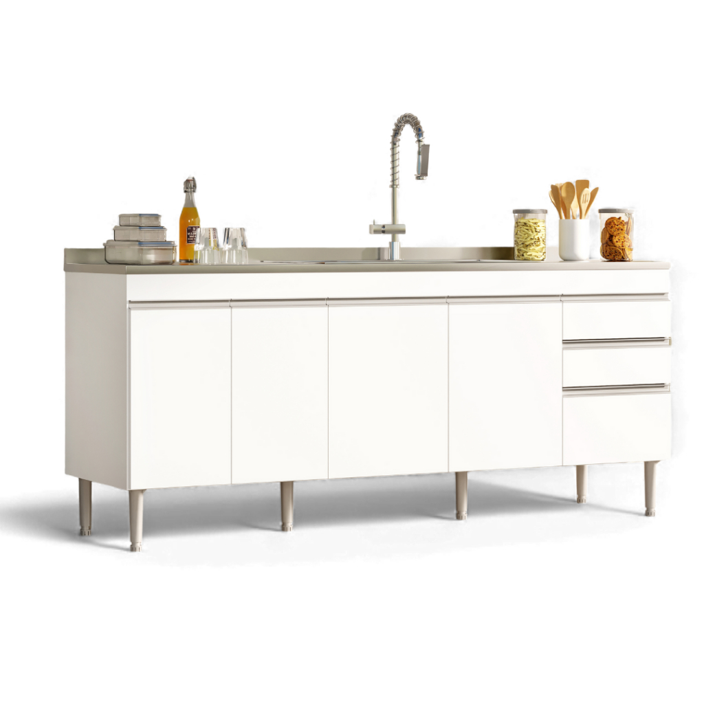 O Gabinete Libra 1,80m é perfeito para quem busca organização, funcionalidade e design moderno. Com portas amplas, prateleiras internas resistentes e acabamento de alta qualidade, ele oferece espaço suficiente para armazenar panelas, utensílios, mantimentos e acessórios de cozinha, deixando tudo sempre à mão e organizado. NÃO ACOMPANHA PIA Destaques do Gabinete Libra1,80m: • 4 portas com dobradiças metálicas; • 1 prateleira interna que suporta 7kg; • 3 gavetas com corrediça metálica suportam até 7kg; • Estrutura que Suporta até 20kg; • Fabricado em MDP; • Puxadores de perfil em plástico PVC; • 6 pés de apoio de 20cm; • Acabamento Touch Alto-Relevo e Alto Brilho UV; • Manual de montagem incluso; Altura: 82 cm | Largura: 174 cm | Profundidade: 53,5 cm | Peso: 38 kg Medidas das gavetas: Gavetas 1 e 2: 37,5 cm (largura) x 14,7 cm (altura) x 38 cm (profundidade) Gaveta 3: 37,5 cm (largura) x 33,7 cm (altura) x 38 cm (profundidade) Não nos responsabilizamos pela montagem do produto. Recomendamos a contratação de um montador profissional. (imagens meramente ilustrativas)