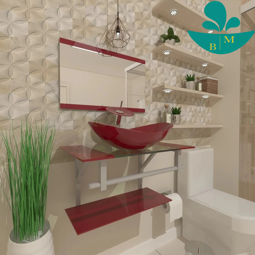 GABINETE DE VIDRO PARA BANHEIRO SERVIA 60CM AC VERMELHO CEREJA