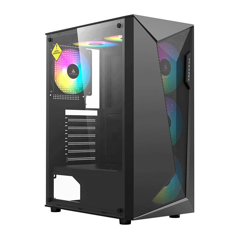 Gabinete Gamer Acegeek Atlas R338 Rainbow Mid-Tower Lateral de Vidro Com 4 Fans AG-ATLAS-R338-BK-I4F