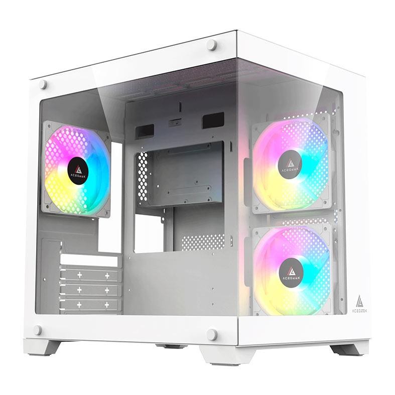 Gabinete Gamer Acegeek Gimli, Rainbow, Mid-Tower, Lateral de Vidro, Com3 Fans Branco AG-GIMLI-WH-3F