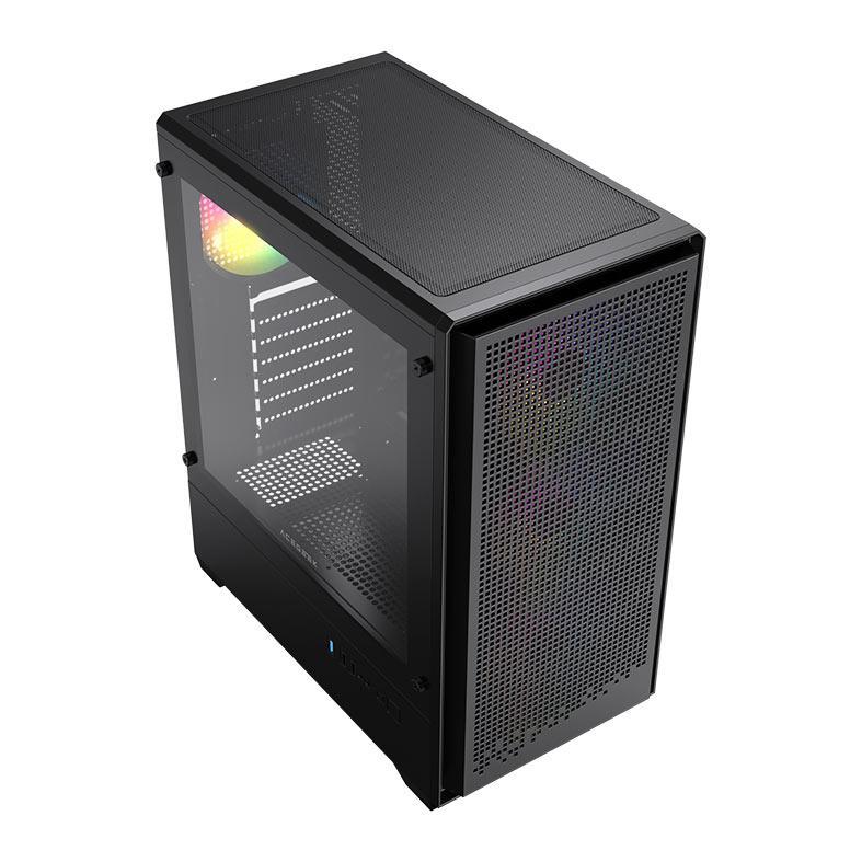 Gabinete Gamer Acegeek Qube Mesh, Mid-Tower, Lateral de Vidro, Preto, AG-QUBE-BK