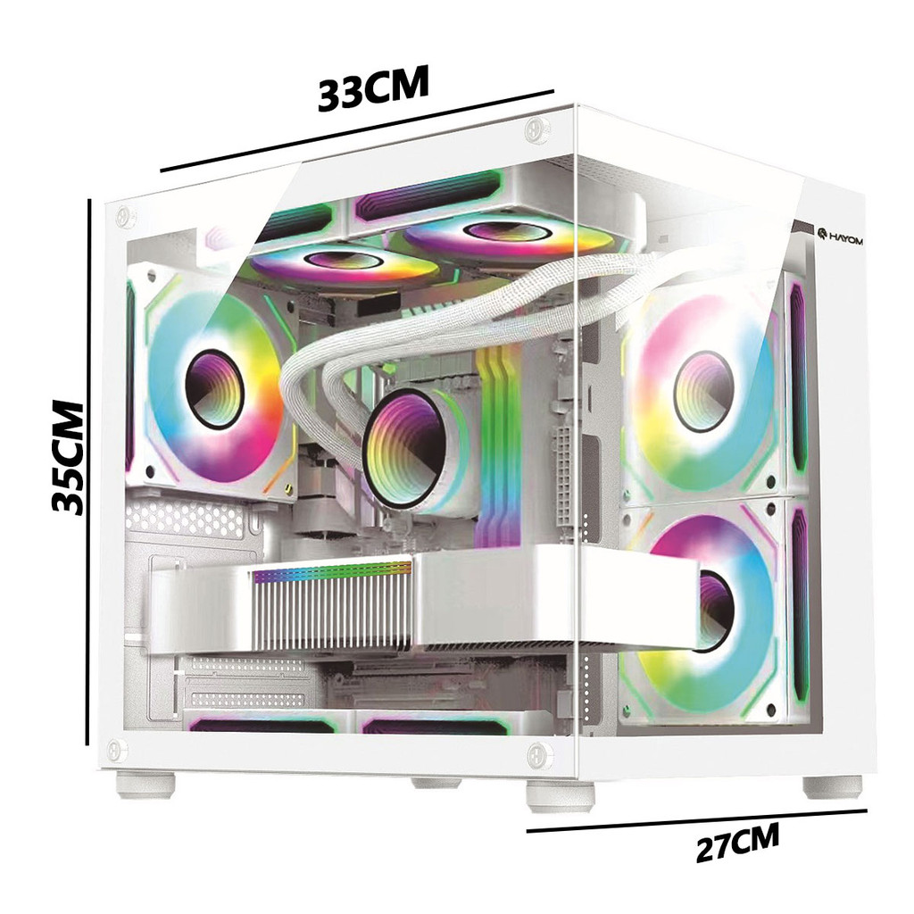 🔴 ATENÇÃO – LEIA ANTES DE COMPRAR 📌 IMAGEM ILUSTRATIVA Este anúncio NÃO É UM COMPUTADOR COMPLETO. O produto anunciado é APENAS O GABINETE, acompanhado de 4 FANS. ❌ NÃO acompanha placa-mãe, processador, memória, HD/SSD, fonte ou placa de vídeo. Gabinete Gamer GB1797 Branco compatível com Micro ATX # Acompanha 4 fans RGB GERENCIAVEIS ## Visão geral Chapa lateral vidro temperado 4mm HD Áudio Painel de vidro temperado 4mm ESPESIFICAÇÃO Placa Mãe MICRO-ATX / MINI ITX Fonte Suportada ATX Placa de Vídeo Máximo 32CM Disco 3.5 HDD* 1 ou 2.5 SSD* 2 Painel USB3.0*1 / USB2.0*1 / Audio PCI-E 4 Slots disponíveis Compatibilidade fans Base: 2 x 120 MM (incluso) Topo: 2 x 120 Fundo: 1x120mm Lateral: 2 x 120mm (incluso) Tamanho 350x270x350mm Peso Liquído 4.7 Kg Peso Bruto 5.5 Kg *IMAGEMS MERAMENTE ILUSTRATIVAS