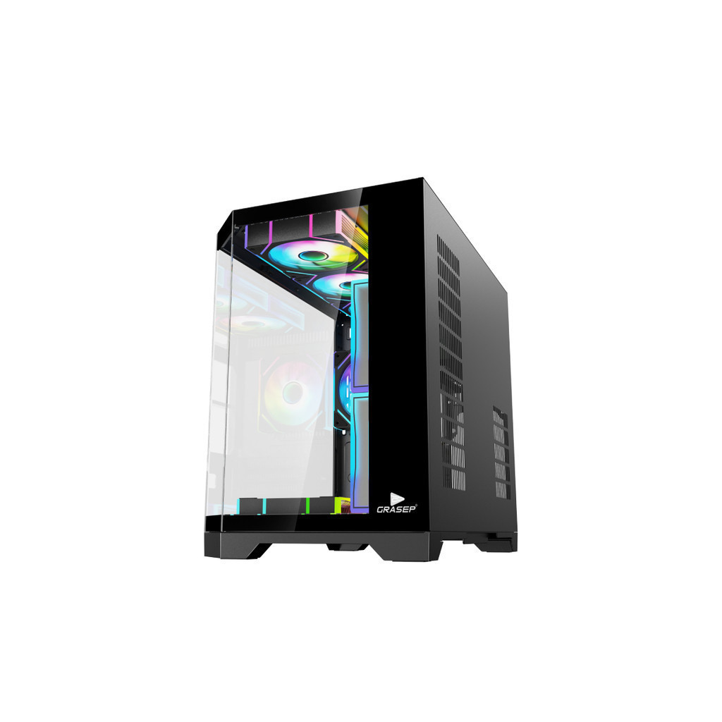 Gabinete Gamer Aquário Vidro Temperado Black M-ATX Sem Fonte Com 6 Fans Rainbow RGB D-MATX07