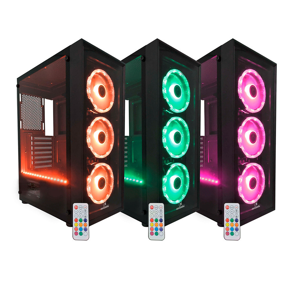 Gabinete Gamer Concórdia Glass X3602 RGB Fita Led Controle Fans
