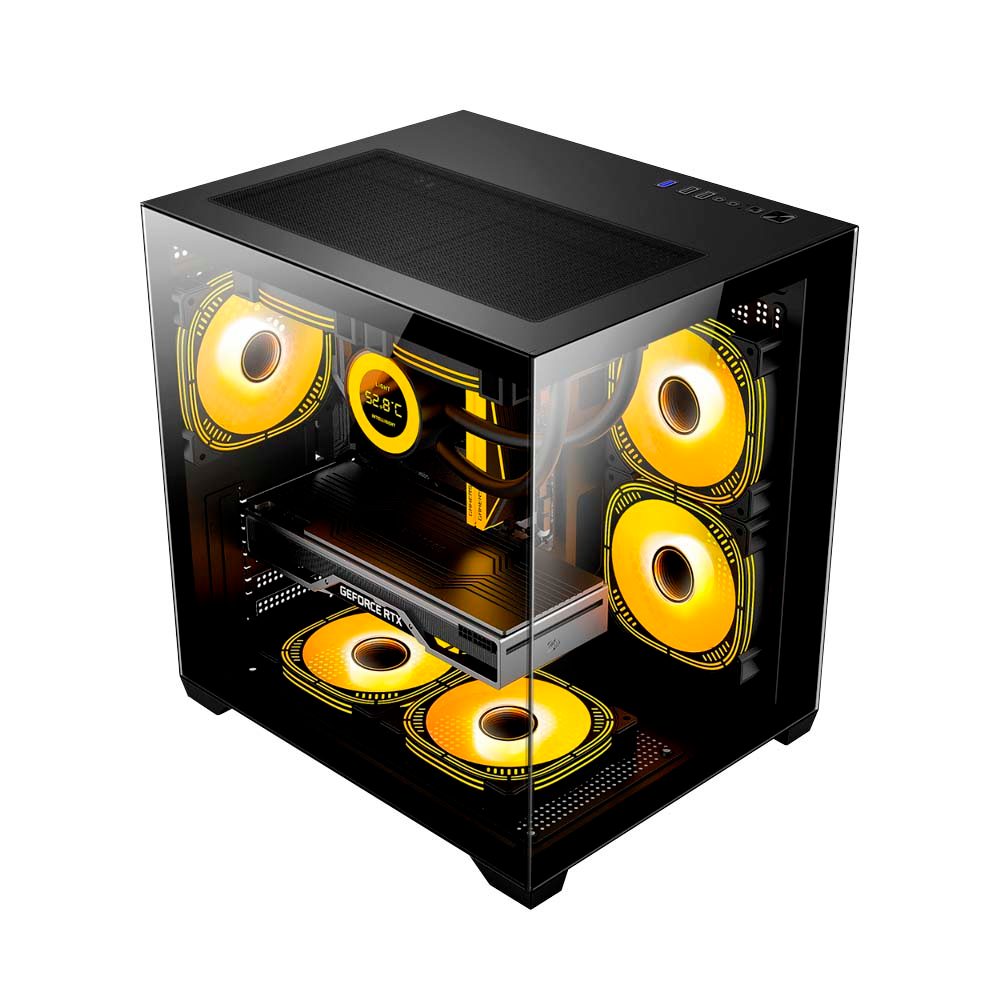 GABINETE GAMER DUEX AQUARIO, MID-TOWER, LATERAL E FRONTAL DE VIDRO, PRETO, 3X FANS RGB - DXGA275BK