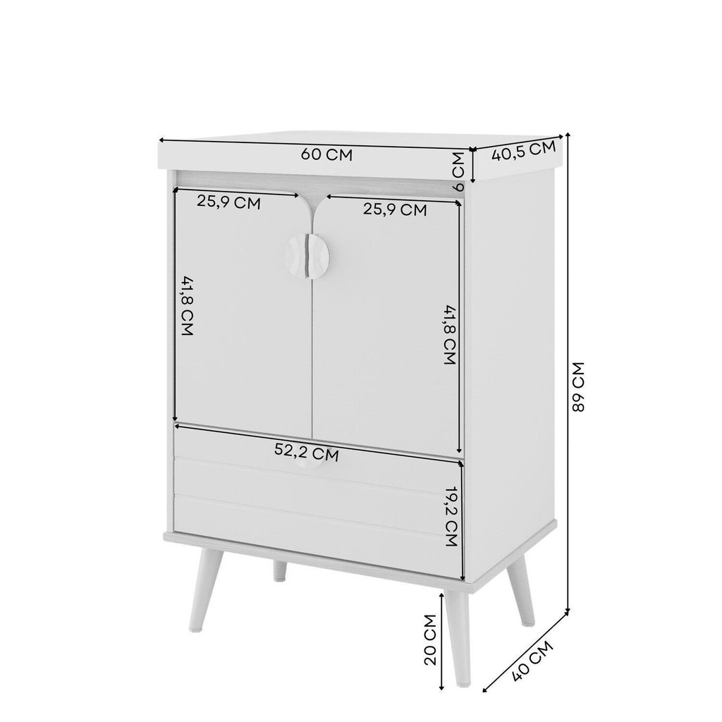 Gabinete para Banheiro 60cm com 2 Portas 1 Gaveta e Cuba de Embutir Trancoso