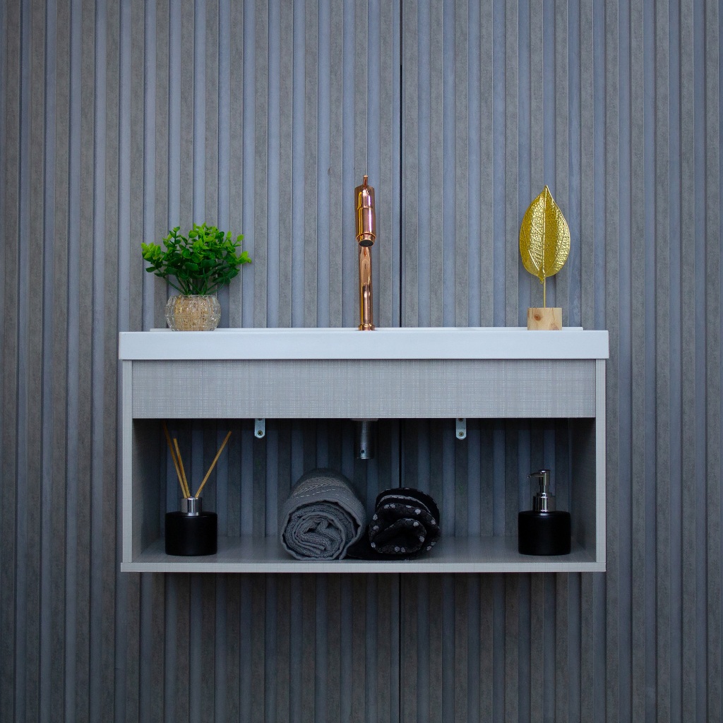 Conjunto Gabinete LIVORNO RIVERZZA O Conjunto Suspenso Livorno RIVERZZA combina design moderno, praticidade e durabilidade. Desenvolvido com estrutura em MDF resistente e cuba em BMC, garante acabamento de qualidade e longa vida útil. Ideal para quem busca organização e estilo, o modelo possui nicho integrado, proporcionando praticidade e fácil acesso aos itens do dia a dia, sem incluir espelho. Destaques do Produto: Acompanha Cuba: Sim (Cor: Branca) Material da Cuba: BMC Material Principal: MDF Estilo: Moderno Portas: Não possui Nicho: Sim Prateleiras: Não Gavetas: Não Pés: Não Rodízios: Não Iluminação: Não Furação para Cuba e Torneira: Sim Dimensões e Pesos: Gabinete: 63cm x 31cm x 31,5cm | Peso: 5,8 kg | Suporta: 10 kg Cuba: 63cm x 2,5cm x 31,5cm Furo da torneira: 2,7cm | Furo do ralo: 3,2cm Embalagem (desmontado): 33,5cm x 18cm x 64cm | Peso: 6,20 kg Itens Inclusos: 1 Gabinete de Banheiro, 1 Pia e 1 Kit de Montagem (não acompanha espelho) Montagem e Manutenção: Kit de montagem incluso (não acompanha parafusos de fixação) Montagem simples, podendo ser realizada por uma pessoa sozinha Limpeza prática: pano levemente umedecido Origem e Garantia: Produto Nacional Garantia do fornecedor: 3 meses O Conjunto LIVORNO RIVERZZA é ideal para quem deseja praticidade, funcionalidade e estilo moderno, agregando organização e charme ao seu banheiro.
