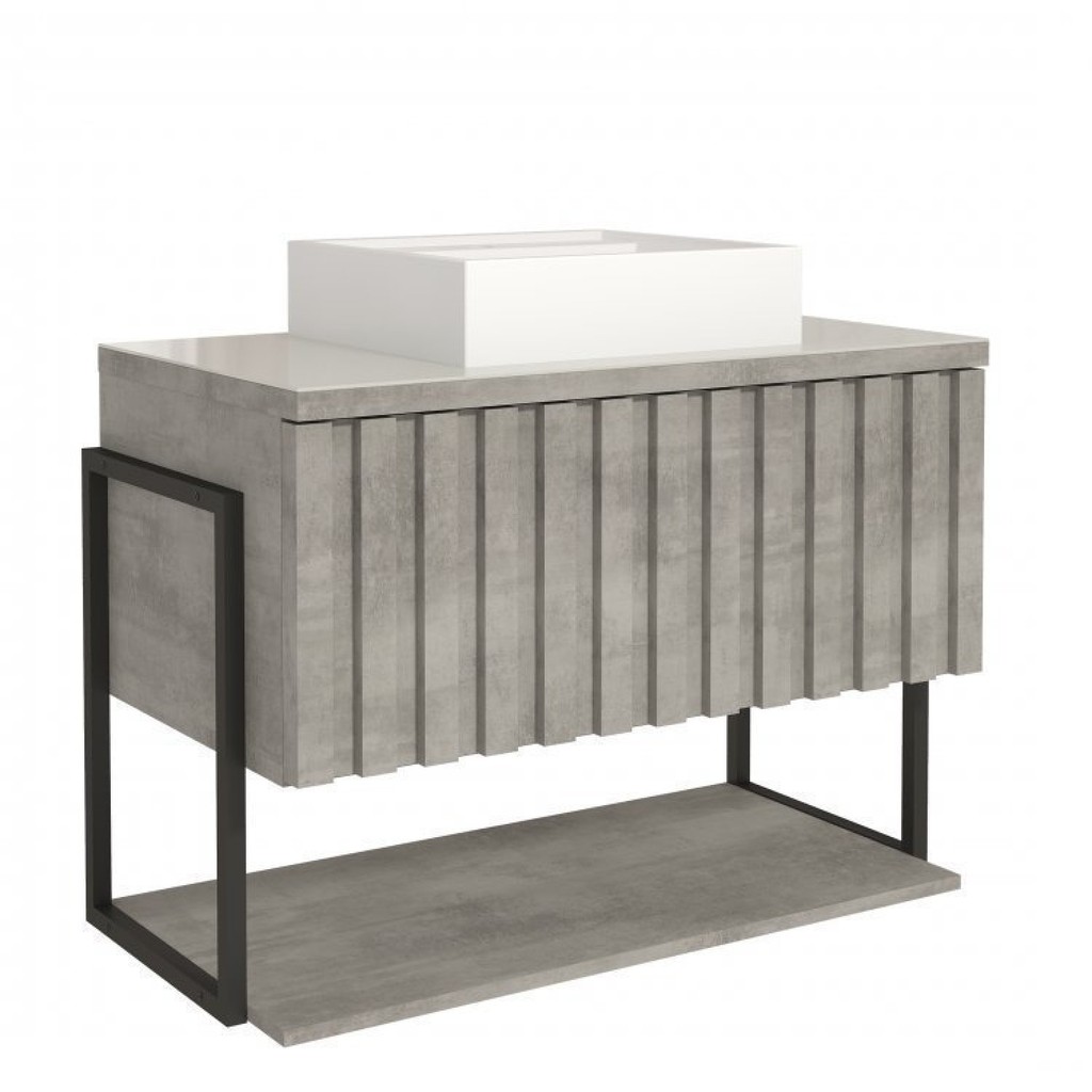 Gabinete para Banheiro com Cuba e Espelheira 85cm MDF Helsing Espresso Móveis Cimento